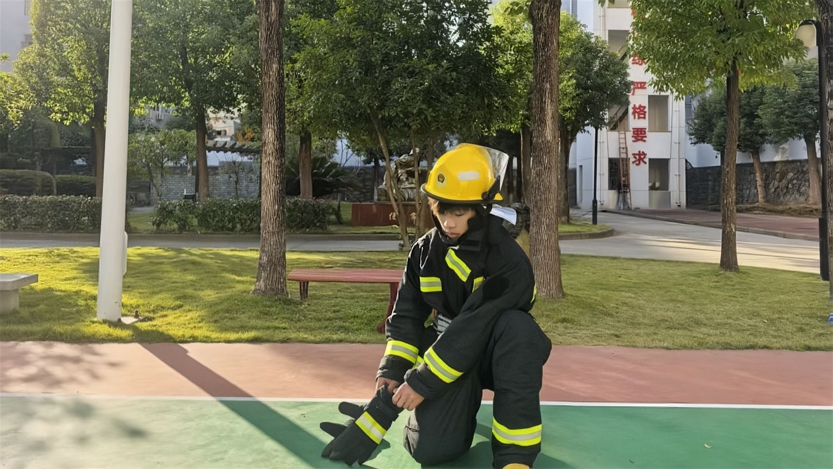 为迎接即将到来的武汉市在汉高等学校第一届消防技能大赛,近日,学校精心挑选组建了一支由保卫干事和学生共同组成的参赛队伍,他们正以饱满的热情和昂扬的斗志,投入到紧张有序的赛前训练中。