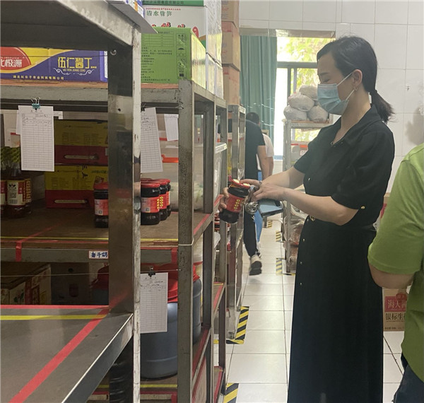 随后,检查组来到了商业门店,重点对食品采购来源、有效期、“三无”(无厂名、无厂址、无生产日期)、食品品质等进行检查。严厉查处不符合食品安全标准的产品,要求商铺对临近最佳使用效期的食品做好记录,提前做好下架、清存工作,严禁过期食品出现在货架上。小组成员在检查过程中叮嘱从业人员要提高疫情防控标准,抽查了工作人员的健康码及核酸检测情况,要求从源头及各环节上保障校园食品安全。