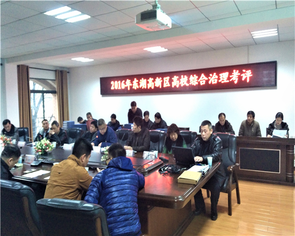 1月5日上午, 2016年东湖高新区高校综合治理考评工作会在文华学院行政楼二楼会议室召开。beat365后保处副处长韩玉进及武汉职业技术学院、晴川学院、湖北科技职业学院、武汉商贸学院、文华学院、湖北体育职业技术学院共7所院校20余人参加了会议。