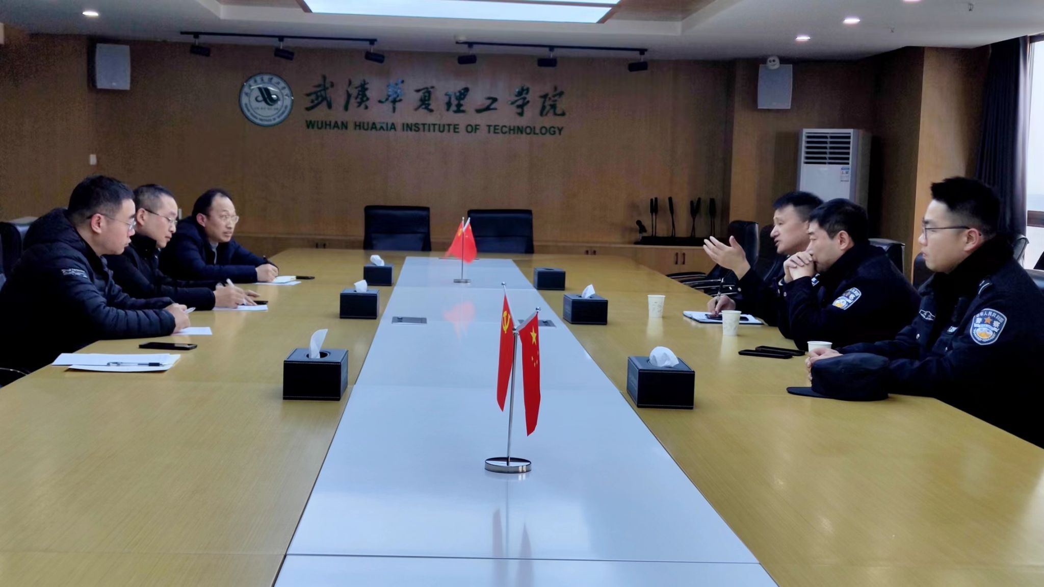 为进一步深化警校联动,着力加强校园安全稳定工作,构建校园安全风险防控体系,12月12日下午,关南派出所所长黄荣、辖区警官邹琪昊一行来校调研交流校园安全工作。校长助理、党政办公室主任胡水兵,保卫部部长叶志强,学工部部长龚先军及保卫部相关人员参加。