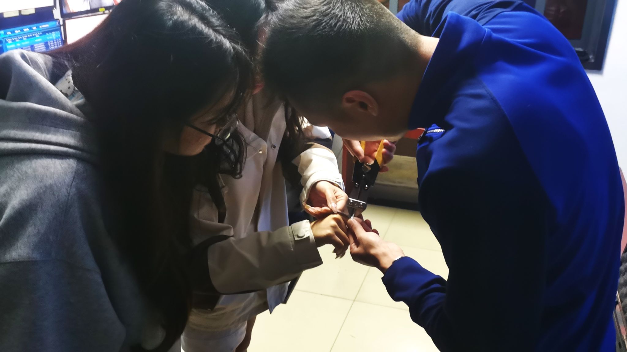 2025年3月26日凌晨,保卫部值班室接到了紧急求助电话。一名学生报警称,她的食指上戴的戒指无法取下,疼痛难忍,迫切需要专业人员的援助。值班的保卫人员迅速响应,抵达现场后发现一枚金属戒指紧紧嵌入了女生的食指,导致指节肿胀并留下了暗红色的压痕,若不立即摘除,可能会因血液循环受阻而导致组织坏死。保卫人员立刻采取措施,开车将她和她的室友紧急送往最近的关东消防救援站。不巧的是,该站的消防员们全部出警,只留下一名门岗值班员,无法进行救援。于是,保卫人员再次迅速行动,将女生送往东湖新技术开发区消防救援大队。在那里,救援人员安抚学生的情绪后,使用斜口钳小心地剪断了戒指,成功将其取下。凌晨1点,保卫人员将学生安全送回了寝室。