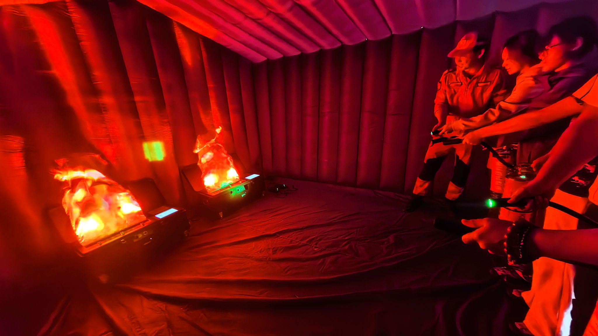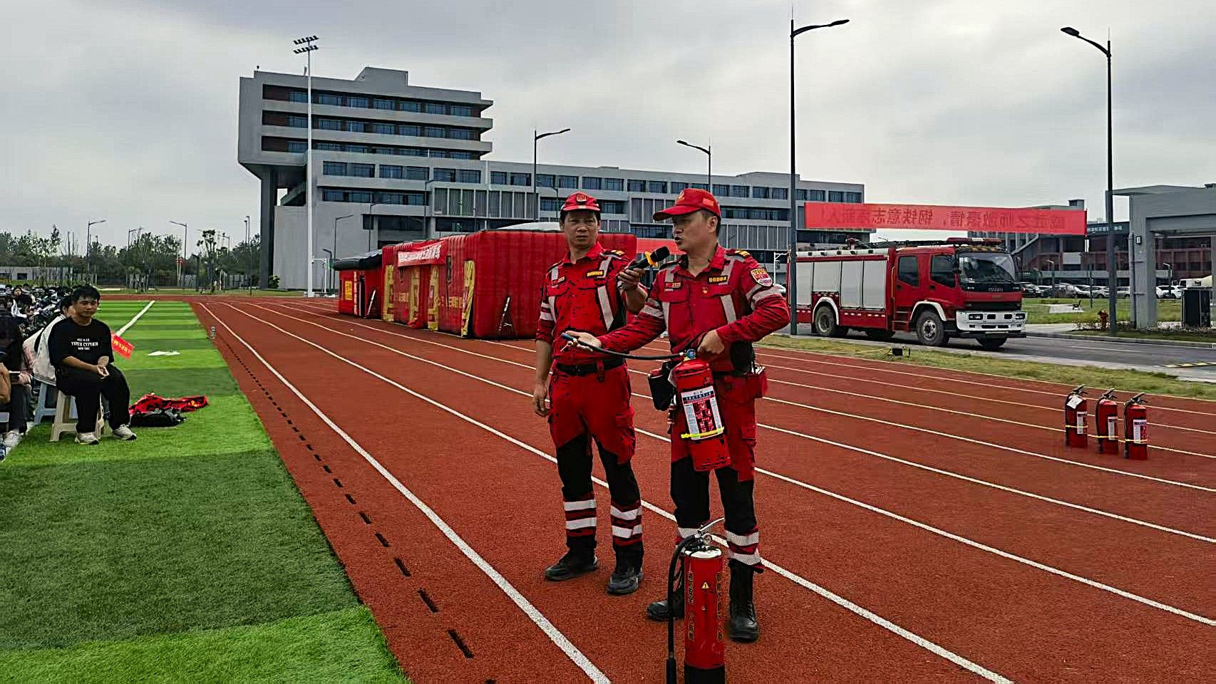 灭火演练结束后,宣安消防中心教官为同学们带来消防安全知识培训。消防教官结合三起高校火灾实例,深刻剖析火灾的严重危害,警示师生防患于未然。随后,现场演示了干粉灭火器“提、拔、握、压”四步操作法,并组织学生依次进入火灾模拟逃生帐篷和仿真灭火移动体验馆,亲身体验火场避险逃生和使用灭火器扑灭火灾的技巧。