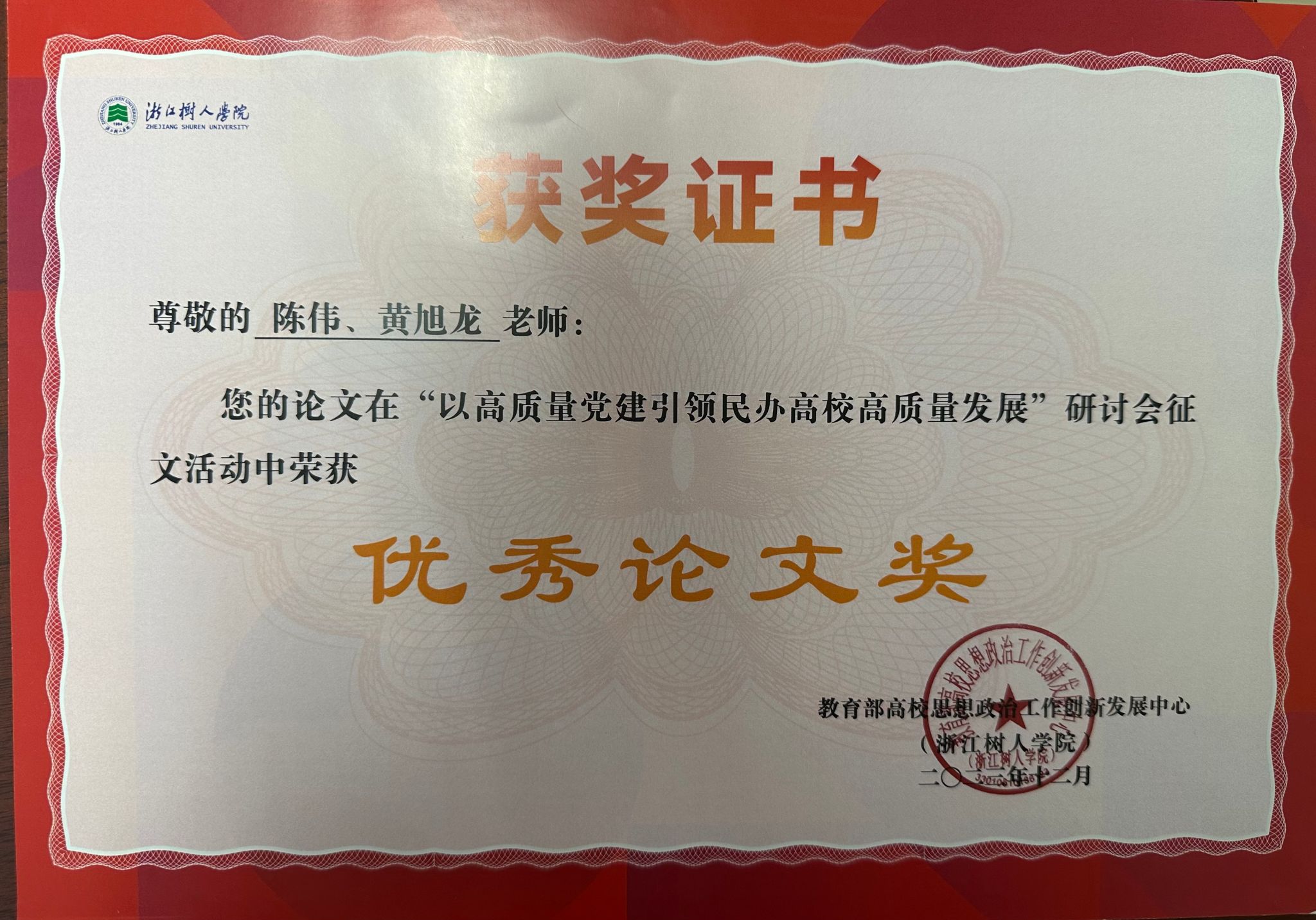 大会对来自全国各民办高校、研究机构负责人和党务工作者的78篇研讨会征文进行了表彰,beat365选送的陈伟、黄旭龙老师的论文《基于共同缔造理念下民办高校“一融双高”路径探索——以beat365官方网站艺术设计与传媒学院为例》获优秀论文奖。