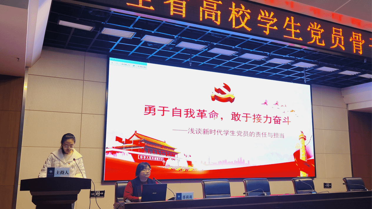 华中师范大学马克思主义学院党委副书记邵莉莉给全体学员带来第二场专题报告“勇于自我革命、敢于接力奋斗——浅谈新时代学生党员的责任与担当”。邵莉莉首先解读了自我革命精神的内涵,深入阐述了自我革命精神融入学生党员责任担当教育的时代价值,并向全体学员提出以政治标准和政治规矩,严格要求自身,加强理论学习,遵守党章,保持自我革命的思想自觉和行动自觉,勇担时代重任。