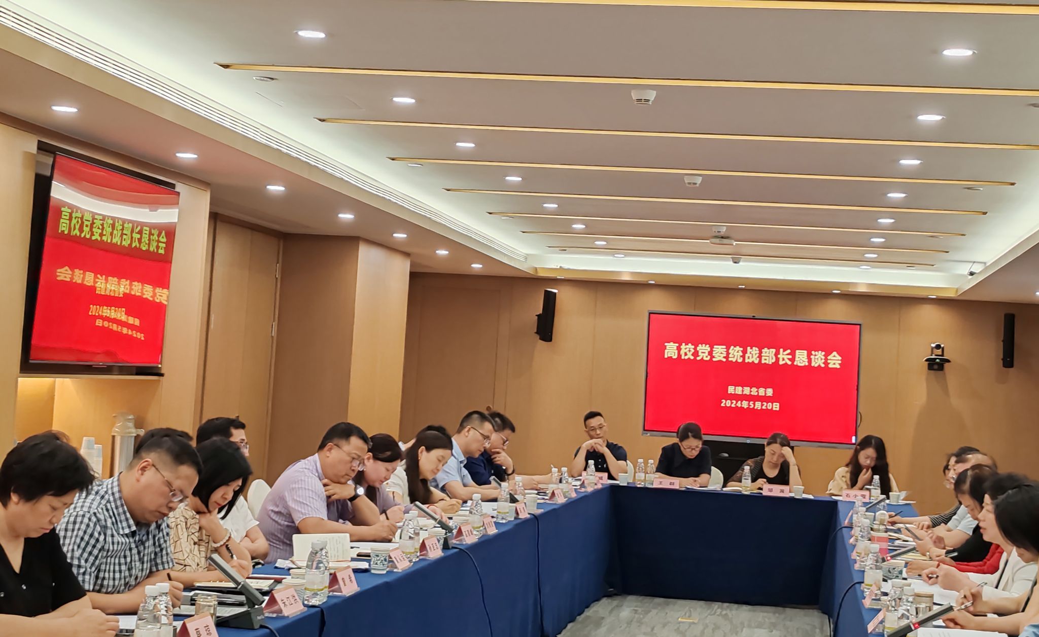 近日,民建湖北省委举行高校党委统战部长恳谈会,民建湖北省委副主委李燕萍、刘运梅出席会议,秘书长姚从升主持会议。beat365党委常委、统战部部长淡玉堂,民建支部主委潘连柏参加会议。