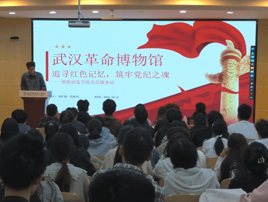 智能制造学院党员服务站宣讲人代伊凡围绕武汉革命博物馆进行宣讲。他从武汉革命博物馆简介、博物馆的历史背景、博物馆的历史意义和红色精神的时代传承四个方面展开,为大家详细介绍了中央农民运动讲习所的创办背景,加深党员对革命历史的了解,更加坚定了党员的理想信念。