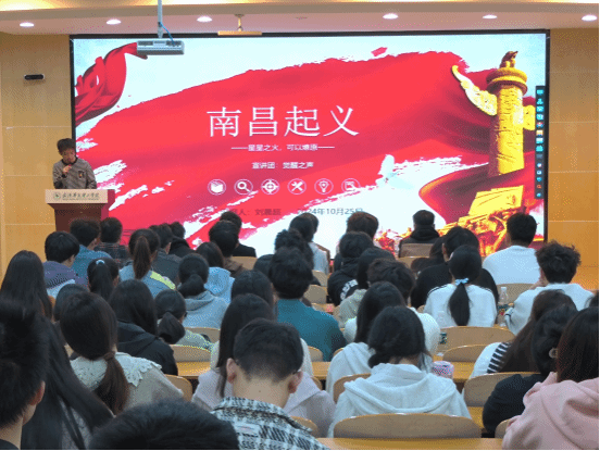 土木建筑工程学院党员服务站宣讲人刘晨超围绕辛亥革命博物馆进行宣讲。他首先通过南昌起义视频为大家介绍了南昌起义的历史背景、过程和影响,促使党员可以更好地理解南昌起义的意义,并将其精神内化为自己的行动指南,树立起强烈的责任感和使命感,担当起民族复兴的大任。