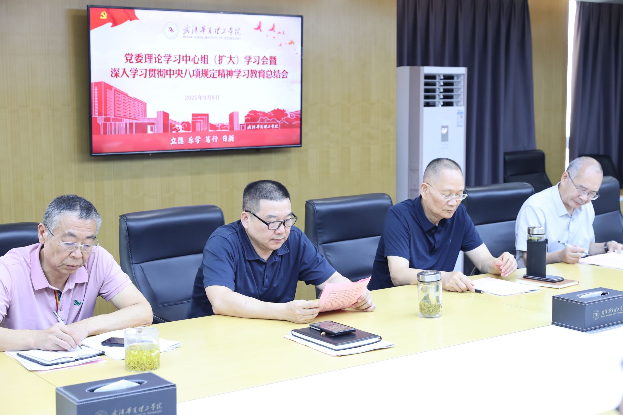 丁德智指出,要继续以抓铁有痕、踏石留印的决心和劲头,认真巩固学习教育成果,深化标本兼治,推动作风建设常态长效,为学校“十五五”发展蓄势赋能。他提出三点要求:一是深化理论武装,筑牢师生思想根基;二是持续压实责任,纾困解难持续发力;三是建立长效机制,巩固学习教育成果。他强调,要以此次学习教育为新的起点,在梧桐湖校区新生报到、平稳运行,在迎评促建的关键期,持续在常和长、严和实、深和细上下功夫,以优良作风将学习教育成果转化为推动学校本科教学工作合格评估和高质量发展的作风保障和实际成效。