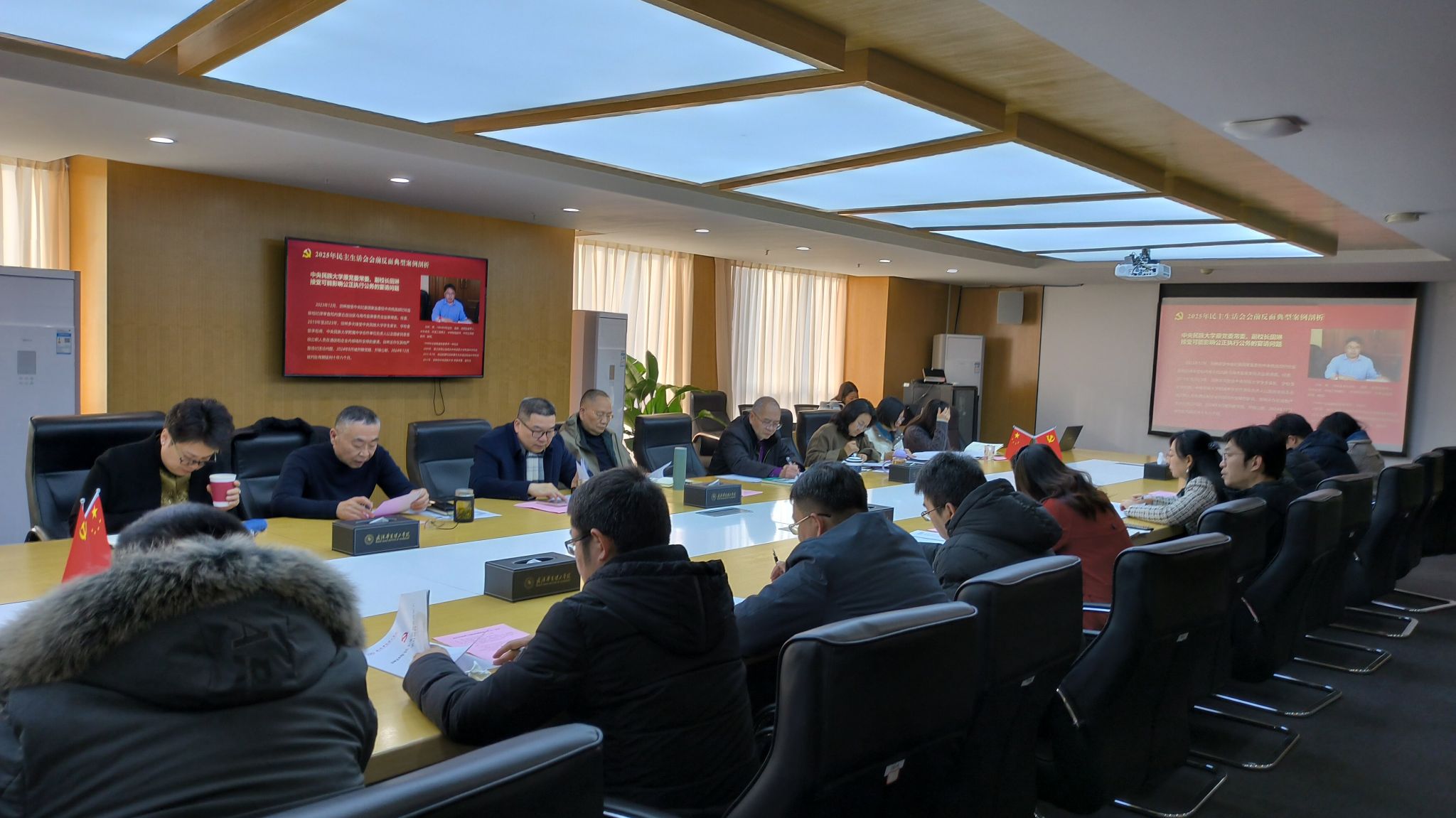 12月29日上午,学校党委在综合楼1402会议室召开2025年度民主生活会会前集中学习研讨和反面典型案例剖析会。校领导、党委常委、委员,党务部门负责人及各二级党组织副书记参加会议。会议由党委书记丁德智主持。