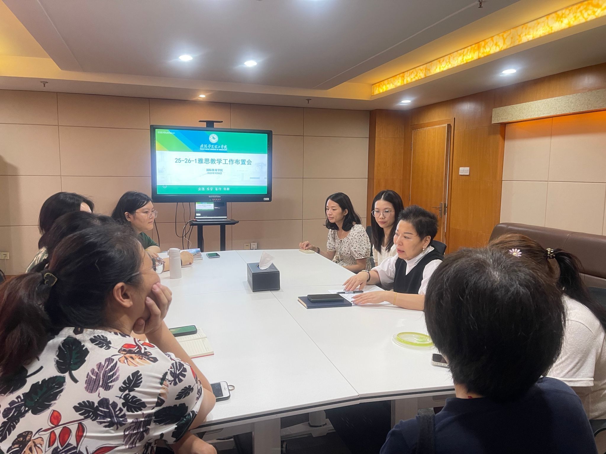 9月8日中午12:40,国际教育学院于综合楼1201召开了本学期首场雅思教学工作布置会。会议围绕雅思教学的系统性规划、双校区协同管理、教学及学生管理等方面展开,为本学期雅思教学工作的全面启动奠定了坚实基础。会议由国际教育学院院长肖凤华主持,国际教育学院相关工作人员及全体雅思课程教师团队成员参加。