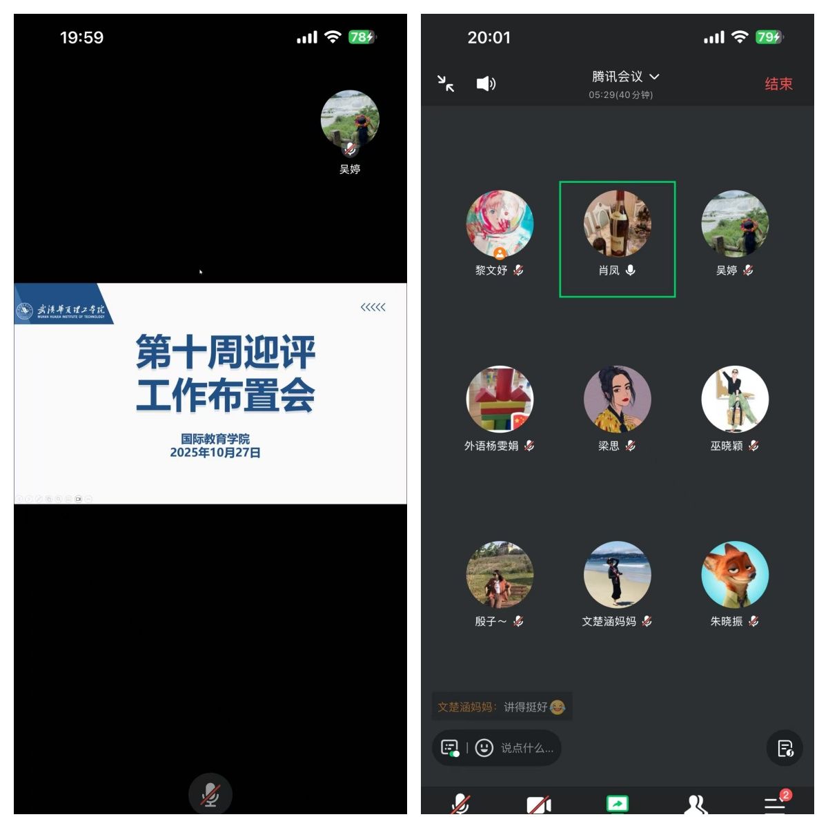 2025年10月27日,国际教育学院线上召开了第十周迎评工作布置会,旨在为即将到来的评估做最后阶段的动员与部署。会议由院长肖凤华主持并主讲,教学管理人员黎文妤作补充发言。