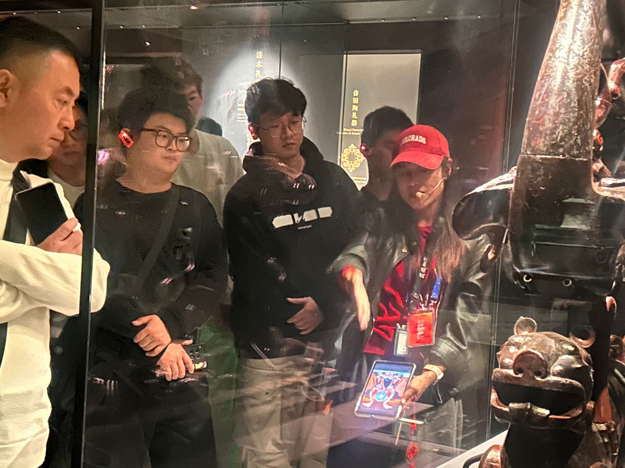 活动伊始,同学们在专业讲解员的引导下,依次参观了曾侯乙展厅、越王勾践剑特展厅以及楚国八百年展厅。在曾侯乙展厅,编钟的雄浑余音仿佛穿越时空,精美绝伦的青铜器皿静静诉说着战国时期高度发达的礼乐文明与精湛技艺,令同学们对古代中国的物质与精神成就赞叹不已。而当面对被誉为“天下第一剑”的越王勾践剑时,其历经两千余年依旧寒光四射、锋利无比的保存状态,不仅体现了古代卓越的冶金技术,更引发了同学们对历史兴衰、毅力与信念的深入思考。步入“楚国八百年”展厅,楚人“筚路蓝缕”的开拓精神、“鸣将惊人”的豪迈气魄以及瑰丽奇谲的漆器、丝绸与文学艺术,生动展现了荆楚大地的悠久历史与独特文化气质,加深了同学们对中华文明多元一体格局的认识。讲解员全程细致讲解,同学们兴致勃勃,或凝神倾听,或驻足观察,或低声交流,沉浸在博大精深的中华历史文化长河之中。