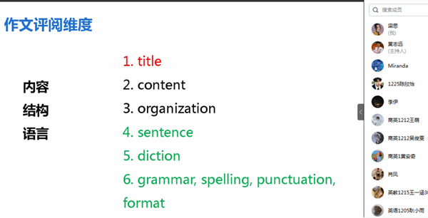工作室成员们也积极进行了反馈并讨论。大家纷纷表示通过培训,更加清楚了自己的不足之处以及改正的方法;对于自己不清楚的地方可以询问老师或上网查询,做好一个负责任的作文批阅者;对于学生作文中出现的一些语法上或是内容上的错误我们要严格把控并准确地指出;在措辞方面,也要讲究写作技巧,如让学生使用连接词、减少口语化表达等。