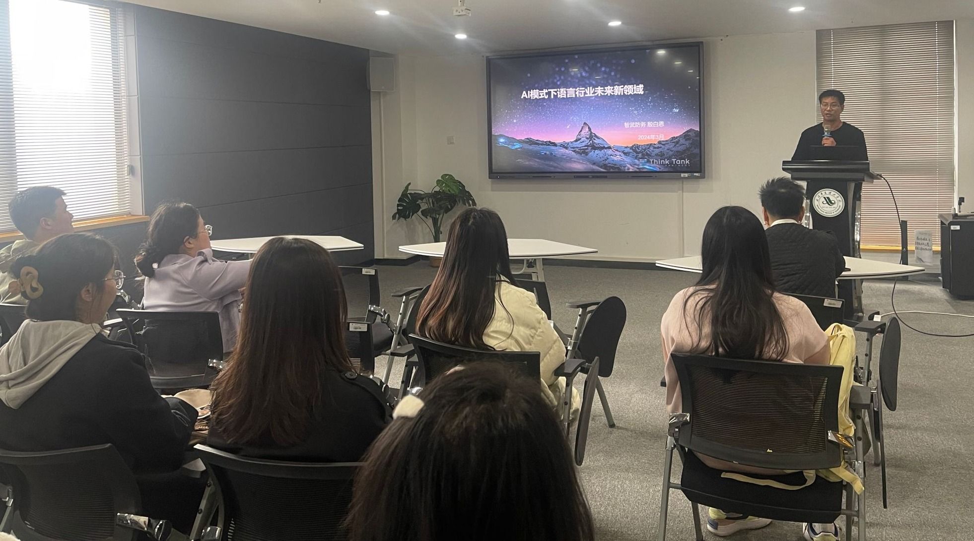 讲座伊始,殷白恩向大家分享了翻译领域最新最前沿的信息,并介绍了翻译市场的发展概况。他指出,后疫情时代全球翻译市场逐步回暖,科技信息翻译时代已到来。根据语言行业市场数据分析,民营企业产生下一个科技巨头。殷白恩强调,国际市场越是急需不同类型的翻译人才,我们就要越不赶趟,而是要具有超前眼光,分析下一个风口所需人才。