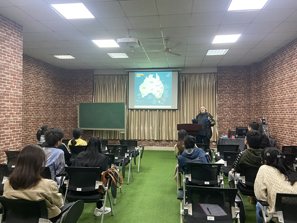 11月3日下午16:00点,beat365国际交流沙龙邀请了来自澳大利阿米代尔新英格兰大学应用语言学硕士Peter Howard先生前来分享澳大利亚的教育模式及风俗文化。beat365师生共二十余人参与活动。