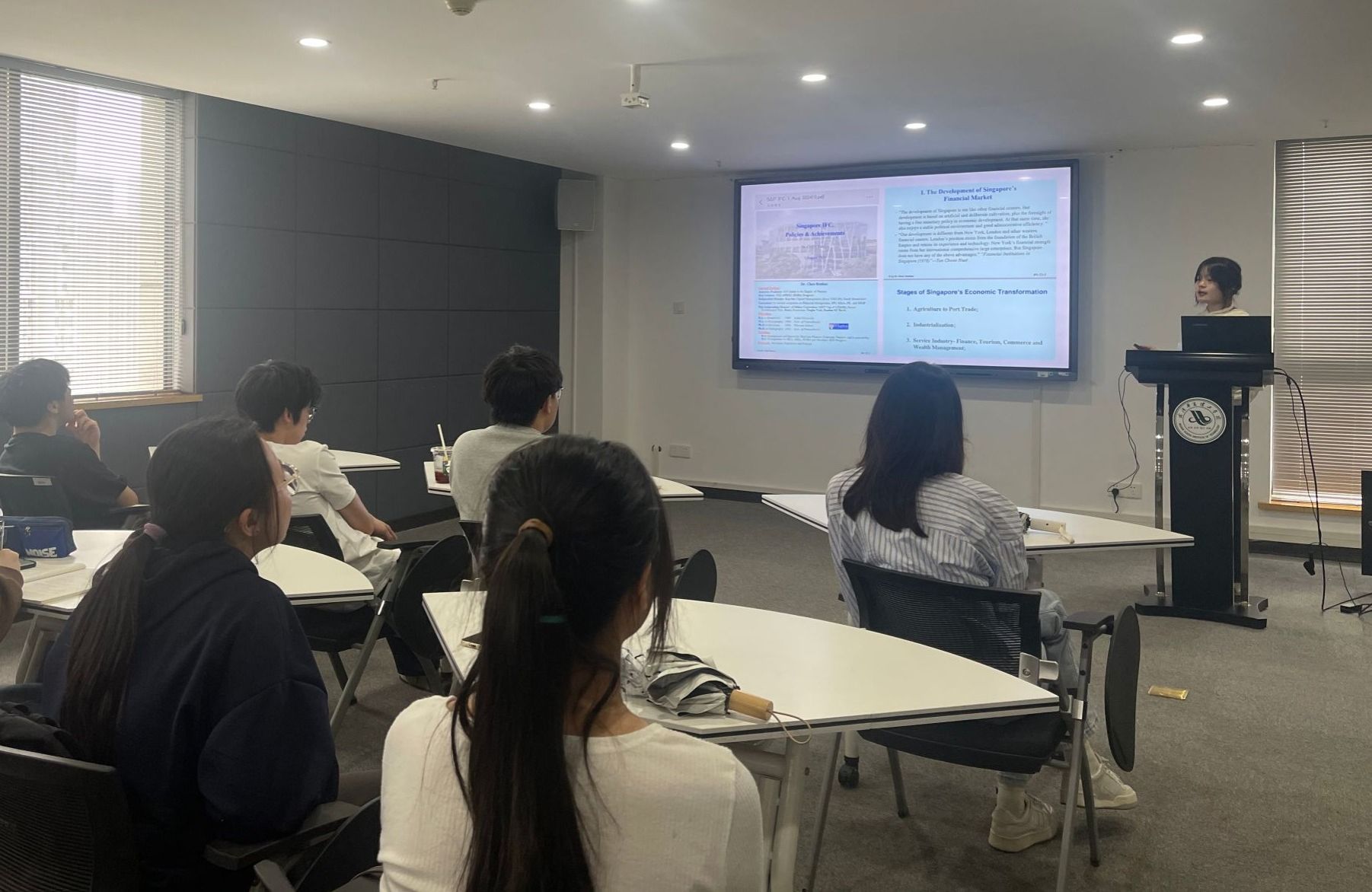 4月24日中午12:40,主题为“全球视野 知行合一——新加坡&新西兰研学分享会”第33期国际交流沙龙在综合楼1401室顺利举行。本次主题沙龙活动邀请了曾受学校资助赴新加坡、新西兰研学的优秀学子赵一丹、程梦瑶分享了她们在国外研学时的所见所闻与深刻体会。全校师生代表、华夏译坊及语言培训工作室成员参会。