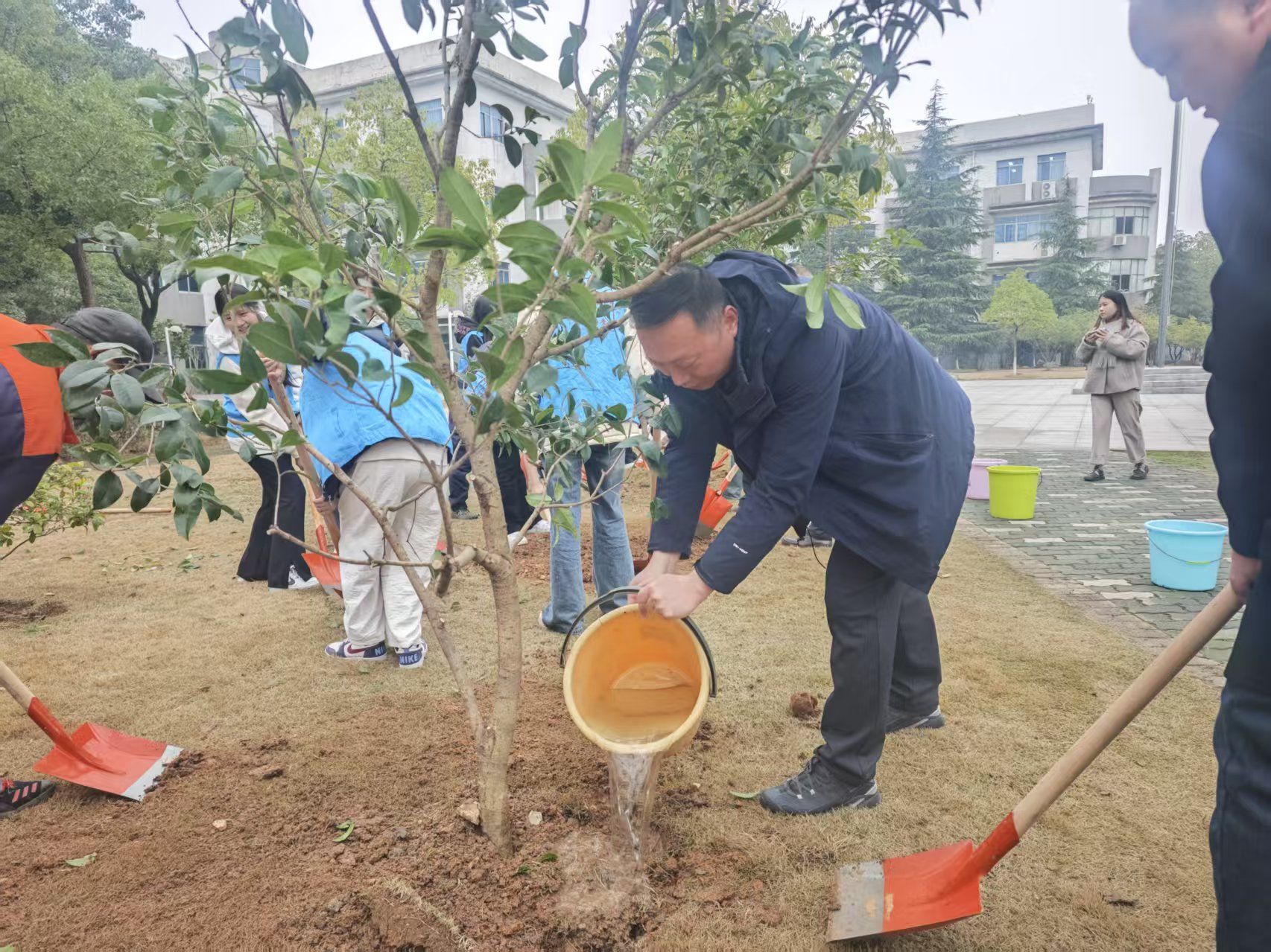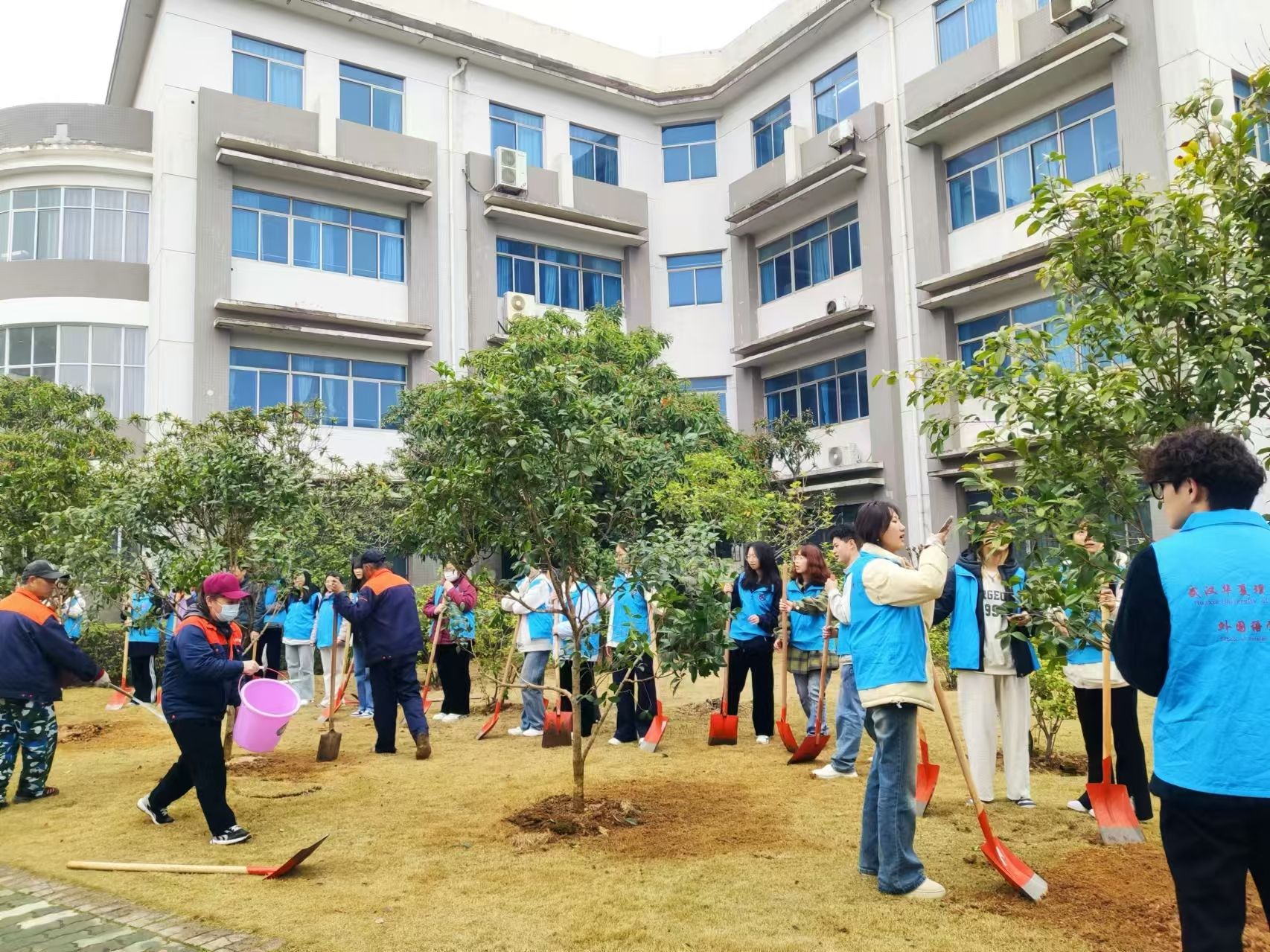3月12日上午,春风和煦,校领导与师生代表来到植树场地,在后勤保障部工作人员的指导下,有序地开展植树活动。大家挥锹培土、扶苗木、浇水灌根,配合默契、干劲十足,忙碌的身影与生态的绿色融合在一起,形成了一道亮丽的风景线。