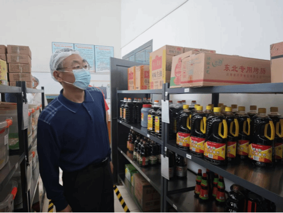 检查组首先来到食材储存区,仔细查看了大米、食用油等大宗食材的储存条件和保质期。李海民强调,食材的储存环境关乎食品质量,必须严格按照相关规范要求存储,确保食材新鲜、安全。在检查过程中,李海民还查验了食材采购渠道信息和验收标准,要求食堂务必把好食材入口关,从源头杜绝食品安全隐患。