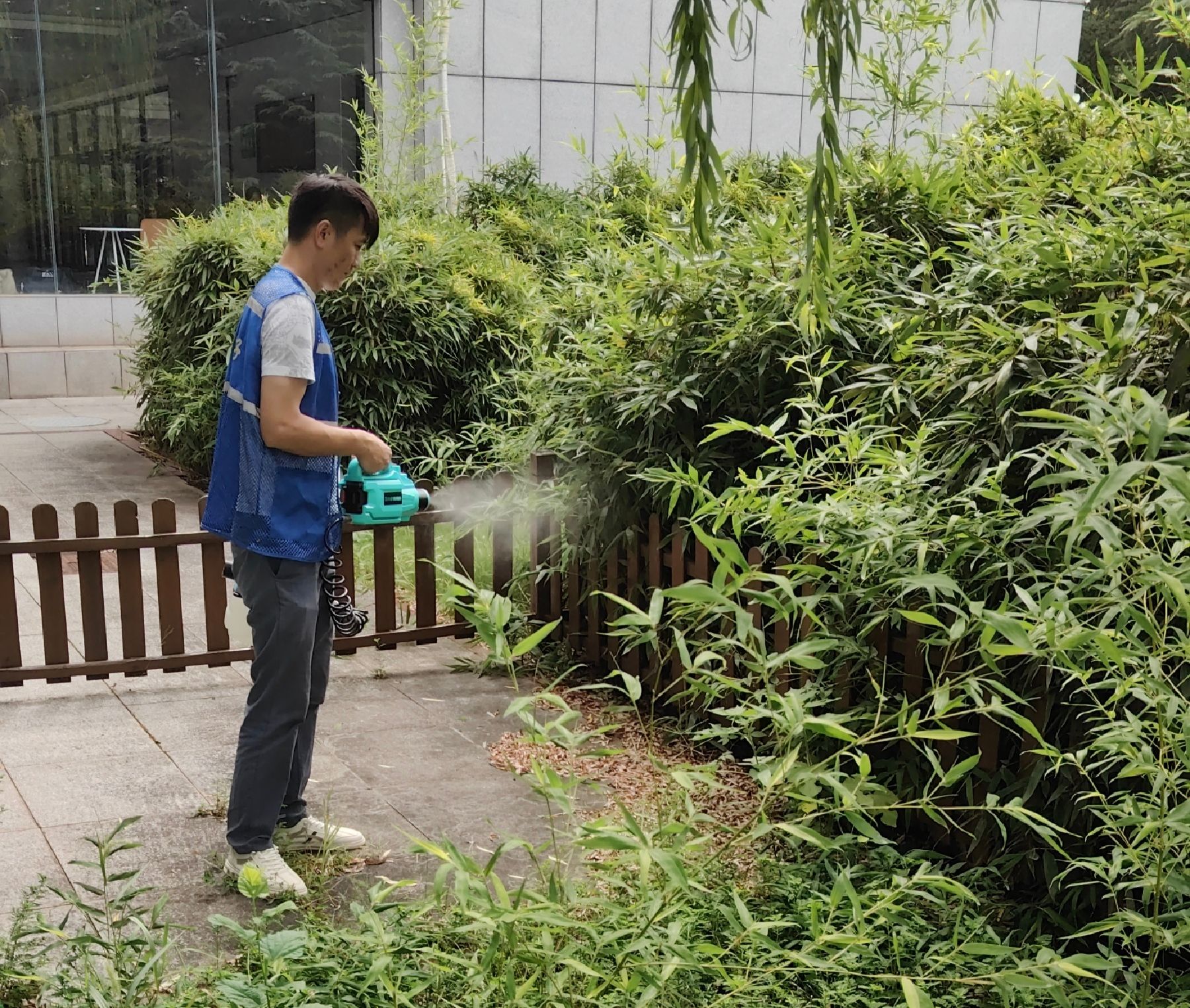 后勤保障部安排具有专业资质的消杀公司对下水道、垃圾桶、绿化带等蚊虫易滋生场所喷洒环保型药剂。安排物业人员全面清理室内外环境,对综合楼、宿舍区等公共区域加大保洁频率,减少备用水的囤积和提高更换频率。针对雨季积水易滋生蚊虫的特点,物业加大巡查校园频率,及时清理天台、花盆托盘、排水沟等处的积水。此外,对校园绿化植被进行修剪疏枝,减少阴暗潮湿环境,从源头切断蚊虫繁殖链。通过“加大消杀力度➕环境清理”多举措来显著降低蚊虫密度。