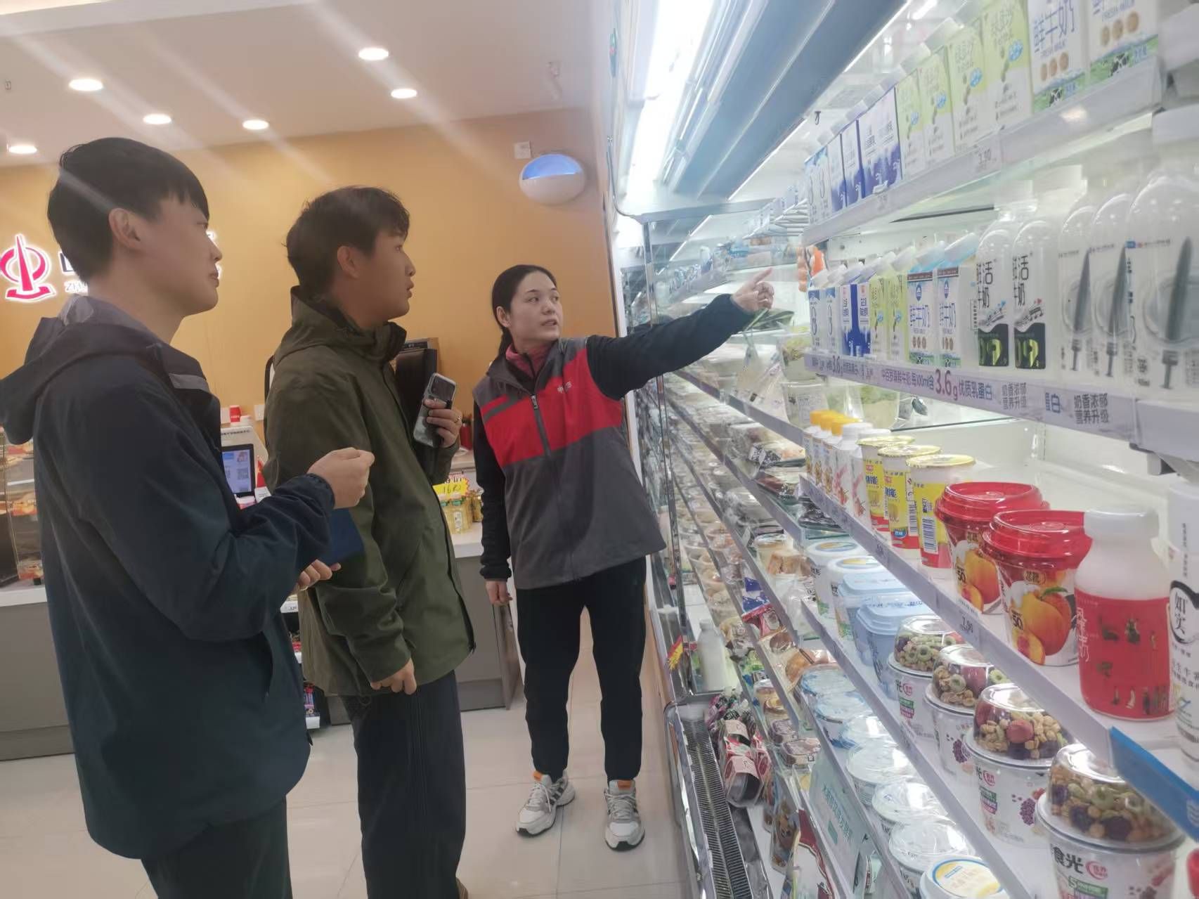 在检查校内商铺时,检查人员主要检查食品有无过期,“三无”食品及变质商品在架销售,同时对商铺的卫生状况、从业人员的健康证明等进行了严格审核,确保每一份售卖的商品都来源可靠、安全无忧。
