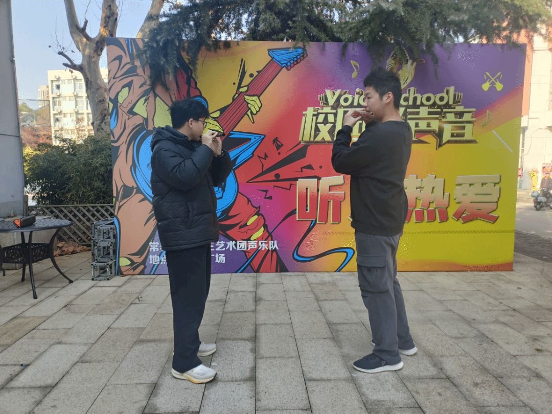 除了精彩的独奏表演,协会还精心编排了合奏节目《有些》。笛子的清脆明亮与箫的深沉浑厚相互交织、配合默契,展现出极高的演奏水准。节目巧妙融合传统乐器与现代音乐元素,既有古韵之美,又不失时代气息,让在场观众耳目一新,纷纷拿出手机记录下这精彩的瞬间。在表演间隙,协会特别设置了“互动体验”环节,摆放了多支供体验用的笛子和箫,吸引了众多对民族乐器感兴趣的同学前来尝试。