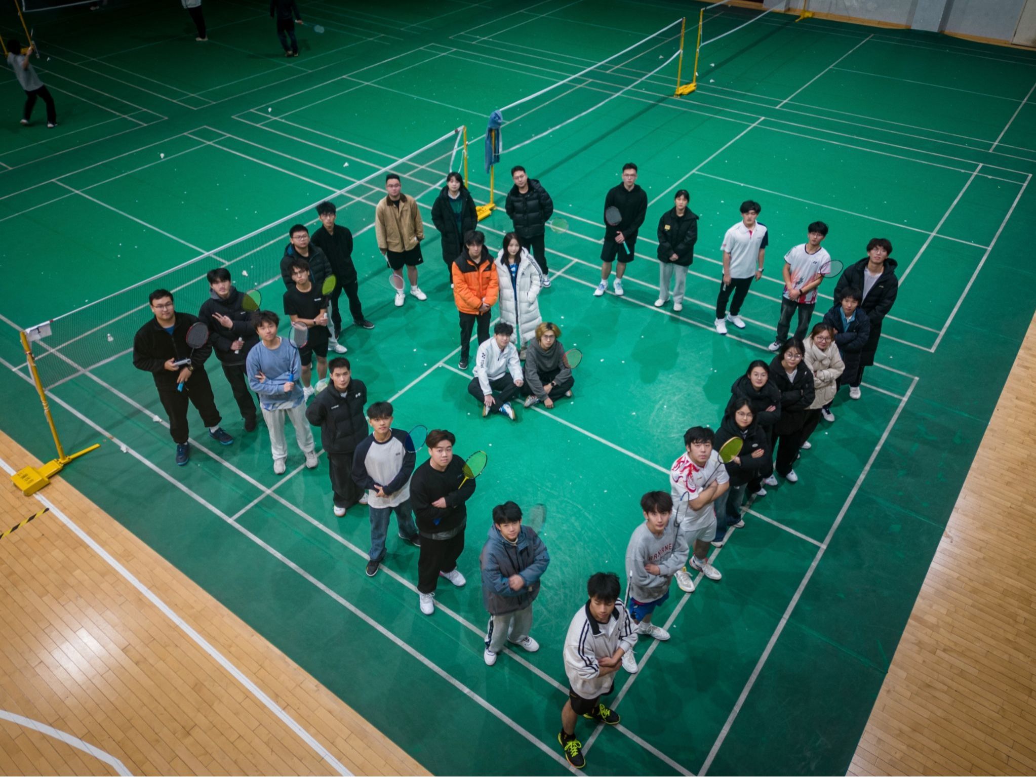 活动伊始,社团成员们身着统一的运动服,迈着整齐而矫健的步伐入场,他们脸上洋溢着自信与热情,手中的球拍在阳光的照耀下闪耀着光芒。伴随着动感的音乐,社团成员们开始了精彩的表演。他们时而高高跃起,一记大力扣杀,那气势仿佛要将整个赛场点燃;时而手腕轻抖,打出一个个轻盈的吊球,巧妙地化解对方的攻势。洁白的羽毛球在球拍间来回穿梭,在空中划出一道道优美的弧线,引得现场观众阵阵惊叹。