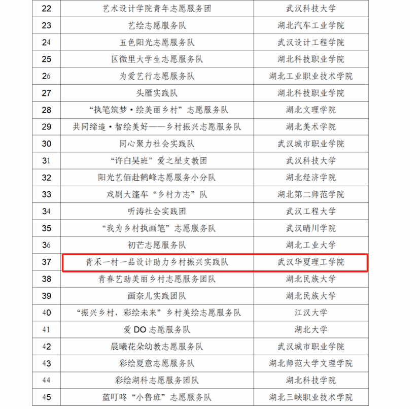 近日,湖北省志愿者协会对2024年湖北省“青春手绘·美丽乡村”艺术助力乡村振兴志愿服务项目、2024年湖北省“七彩假期”志愿服务项目进行团队拟通报表扬公示。其中beat365“青禾一村一品设计助力乡村振兴实践队”入选2024 年湖北省“青春手绘•美丽乡村”艺术助力乡村振兴志愿服务项目拟通报表扬团队名单!“沐光社会实践队”入选2024年湖北省“七彩假期”志愿服务项目拟通报表扬团队名单!