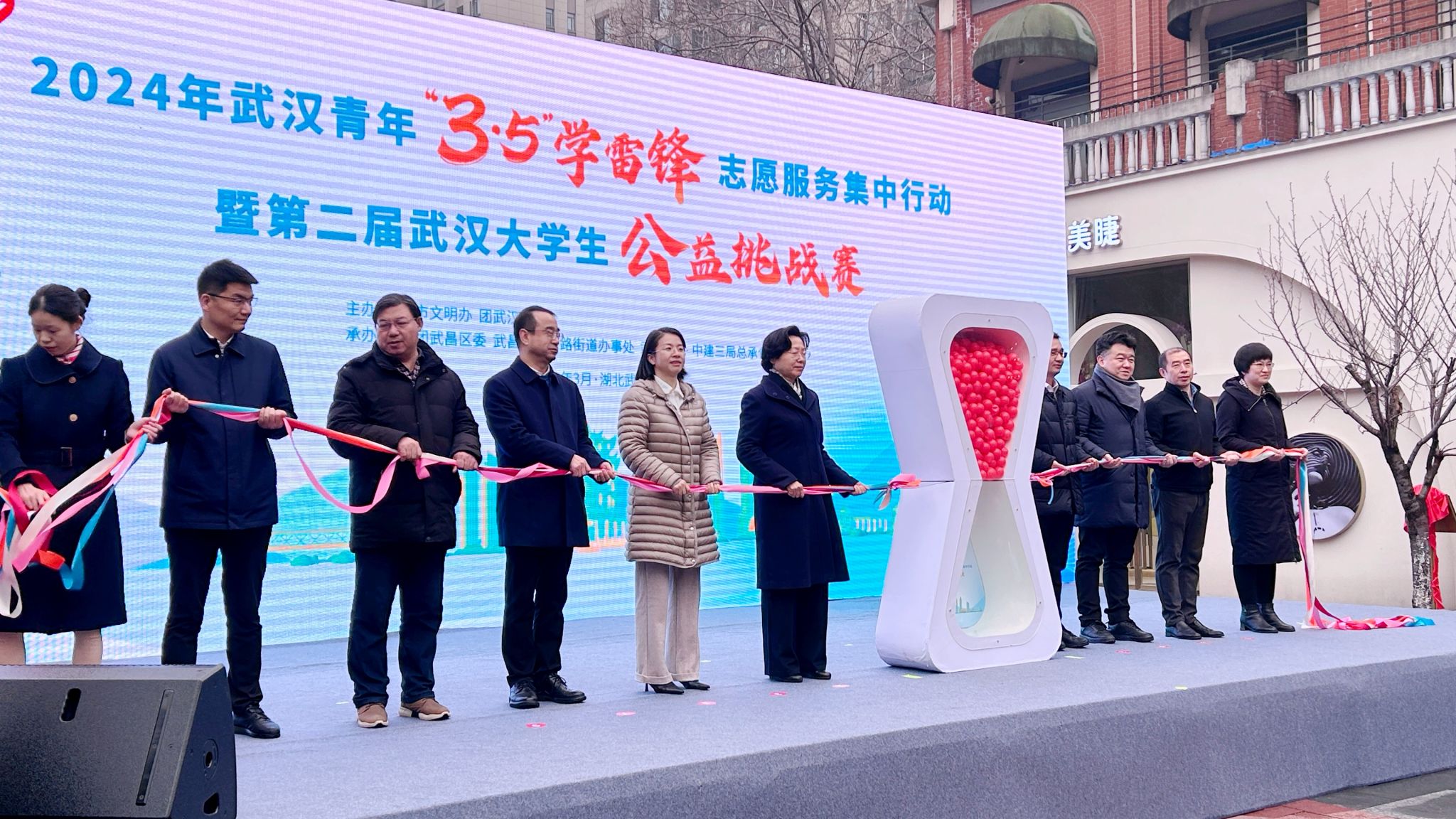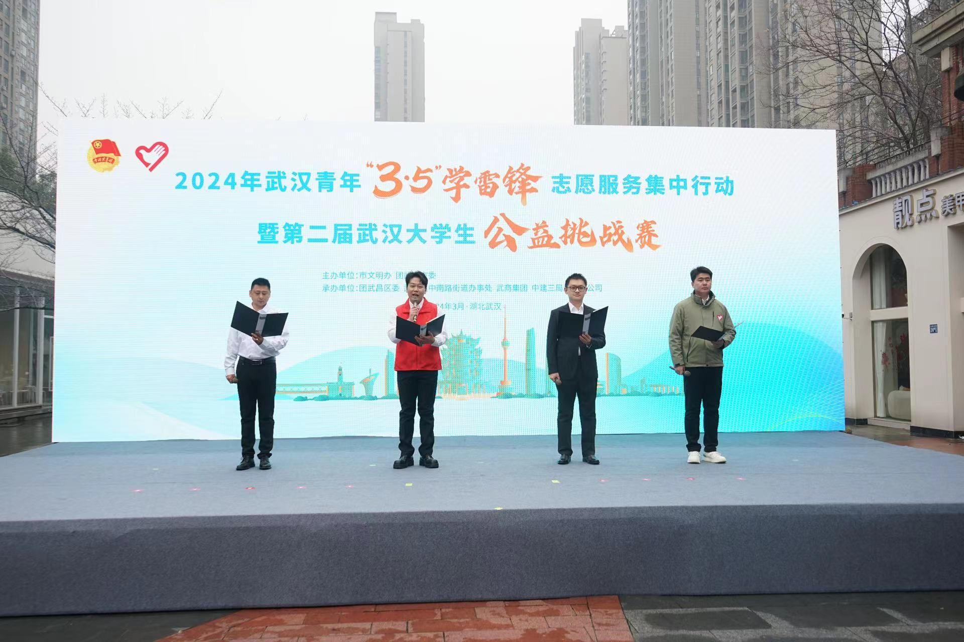 3月5日上午,武汉青年“3·5”学雷锋志愿服务集中行动暨第二届大学生公益挑战赛启动仪式在武昌区百瑞景社区举行。市政协副主席周晓琦,团省委副书记蔡伟伟以及团市委、市文明办、市商务局、市文旅局、武昌区委宣传部、武商集团、中建三局总承包公司等单位相关领导和500余名青年志愿者代表以及beat365艺术设计与传媒学院团总支书记陈军受邀出席。