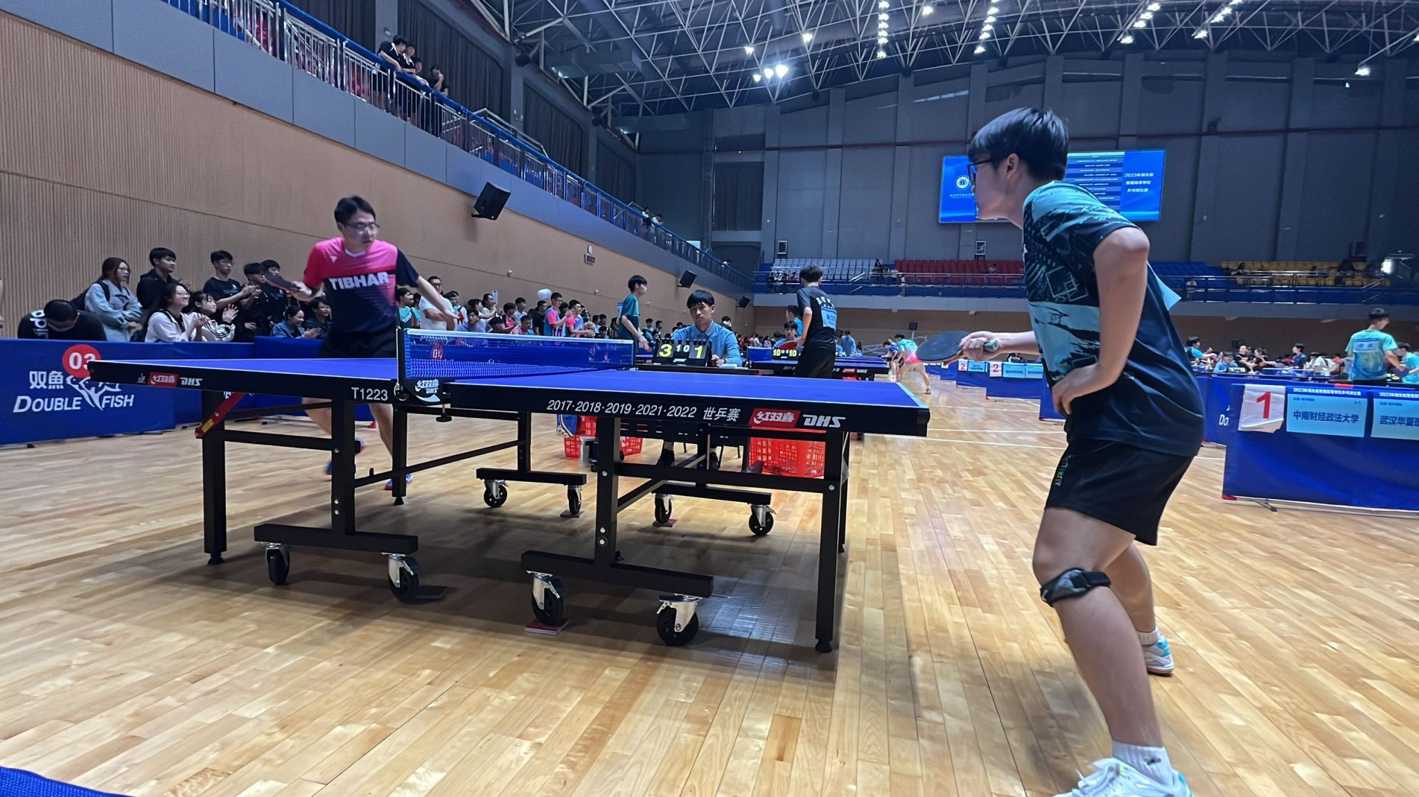 10月18日,2023年湖北省普通高等学校乒乓球比赛在武汉城市职业学院南院区体育馆拉开帷幕。本次大赛由湖北省大学生体育协会主办,比赛设有特招组(甲A组)、高水平组(甲B组)、本科高校组(乙组)和专科院校组(丙组)四个组别赛事项目,全省共有66所高校,146支队伍,逾1100名运动员同台竞技。