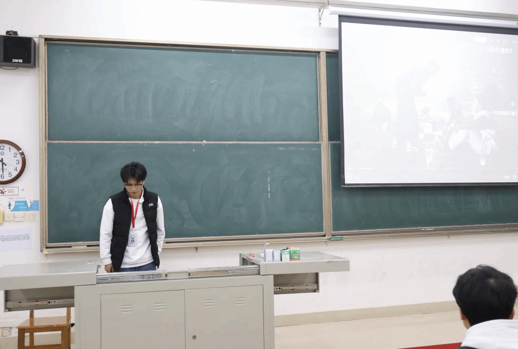 青年志愿者协会主席团成员廖思妍、部长杨博恒,干事孙诗琴依次上台,对本学期的活动进行了总结汇报,不足之处进行分析。主席团成员程翀宣读了表彰名单,对裴梓渲等两名优秀活动负责人、郝俊超等10位优秀部长和朱如斯等15位优秀干事进行了表彰。