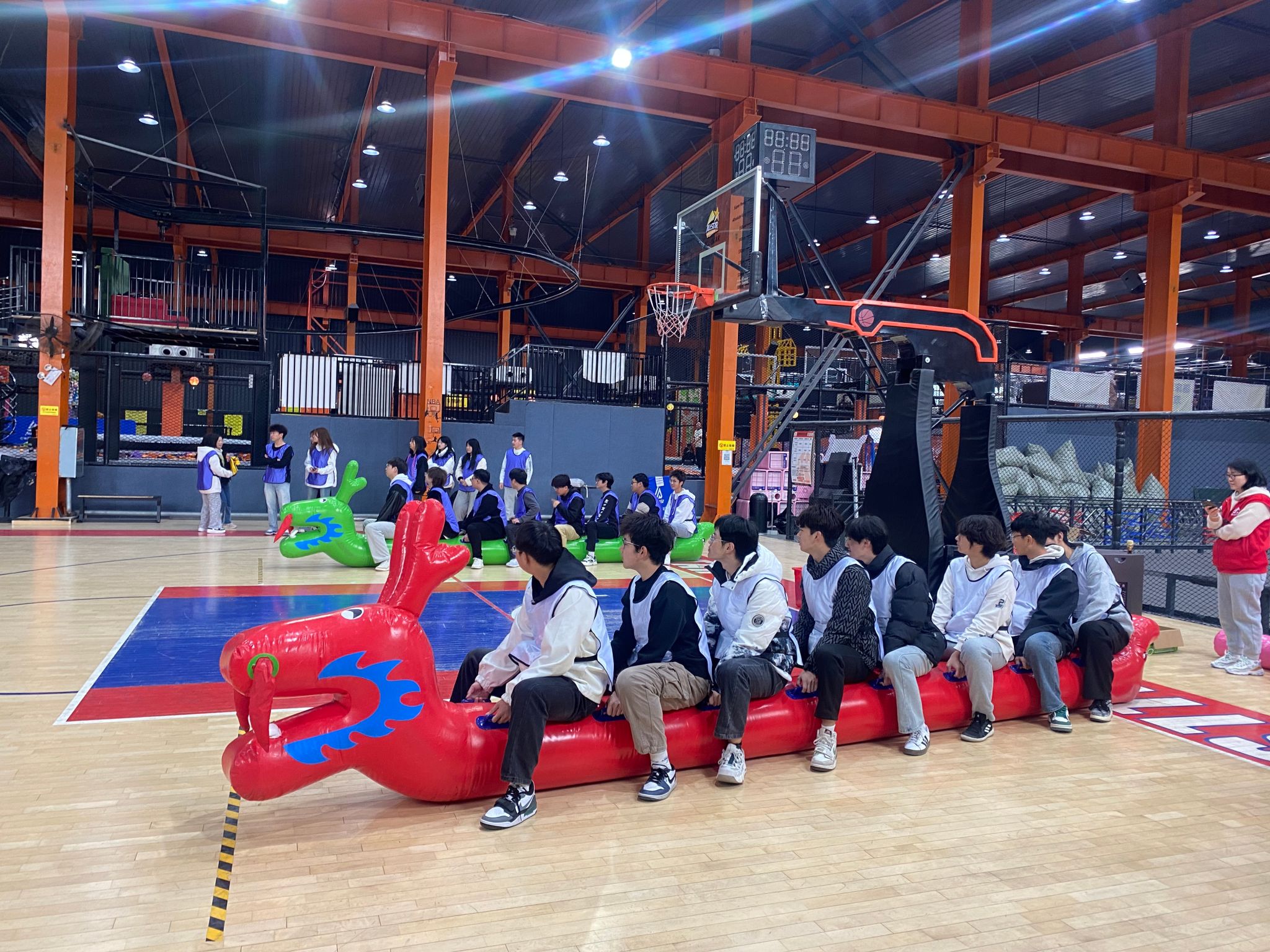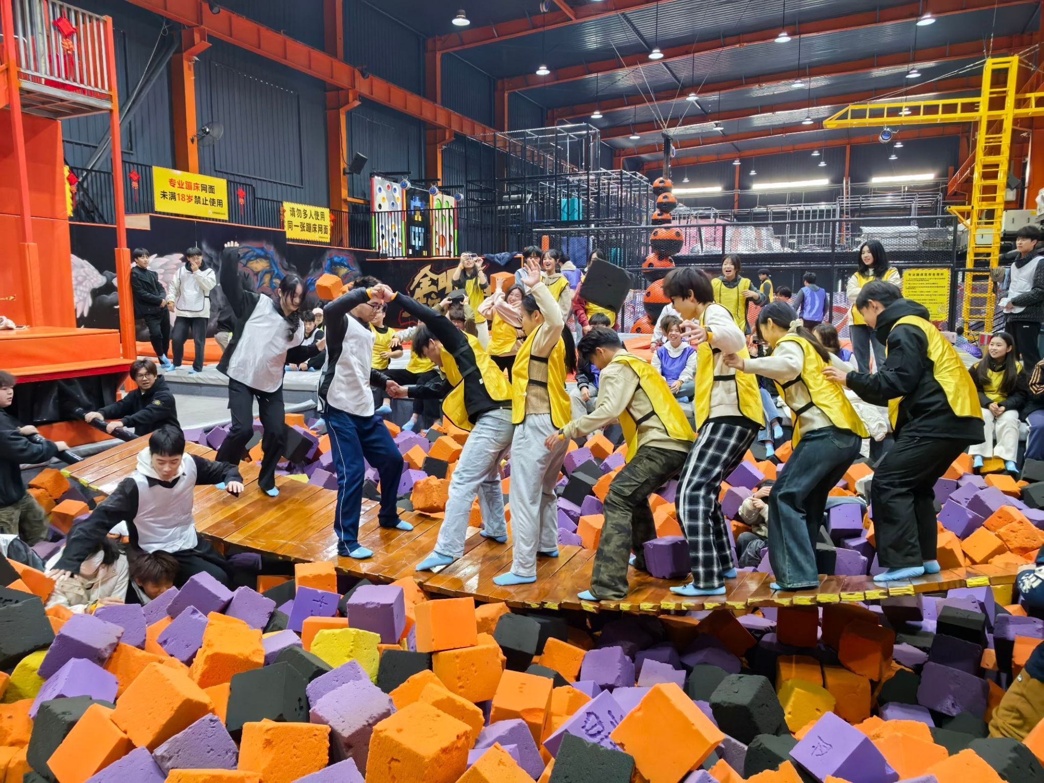 最后,还举行了攀岩、羽毛球赛、篮球等团队挑战赛,自由活动环节,同学们还尽情体验了蹦床馆内的各项游乐设施,每个角落都留下了他们欢乐身影和兴奋的尖叫。