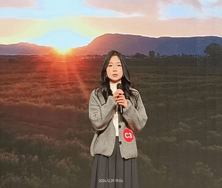 在比赛的尾声,何小平老师作为特邀嘉宾压轴出场,为大家带来了一首《最爱》。老师的歌声宛如山间清澈的泉水,叮叮咚咚,带着灵动的韵律流淌在观众们的心间;又像春日里柔和的微风轻轻拂过,携着丝丝缕缕的美妙萦绕在大厅的每一个角落。无疑,这首歌曲将这次决赛又一次推向了高潮。