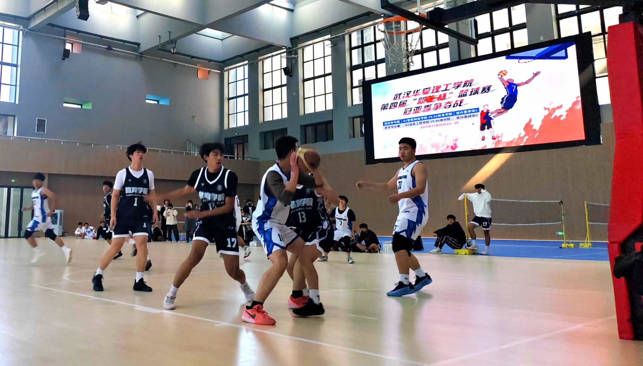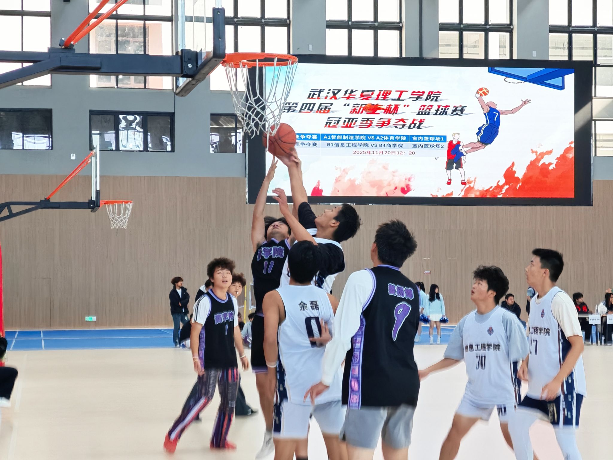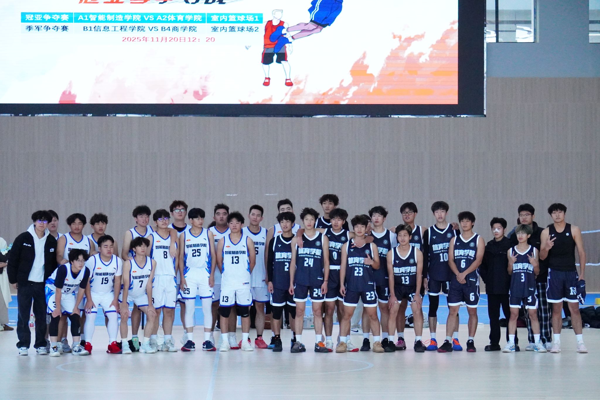 11月20日,梧桐湖校区体育馆气氛火热,2025年“新生杯”篮球赛迎来最终角逐。体育学院、智能制造学院、商学院与信息工程学院四强齐聚,为冠、亚、季军展开激烈争夺。当天共进行两场关键对决:冠军争夺战在体育学院与智能制造学院之间展开;季军争夺战则由商学院对阵信息工程学院。经过激烈比拼,比赛结果揭晓:冠军体育学院、亚军智能制造学院、季军商学院。本次赛事不仅展现了新生球员们的竞技水平与团队精神,也进一步丰富了校园体育文化生活,为观众奉献了一场青春与热血交织的篮球盛宴。