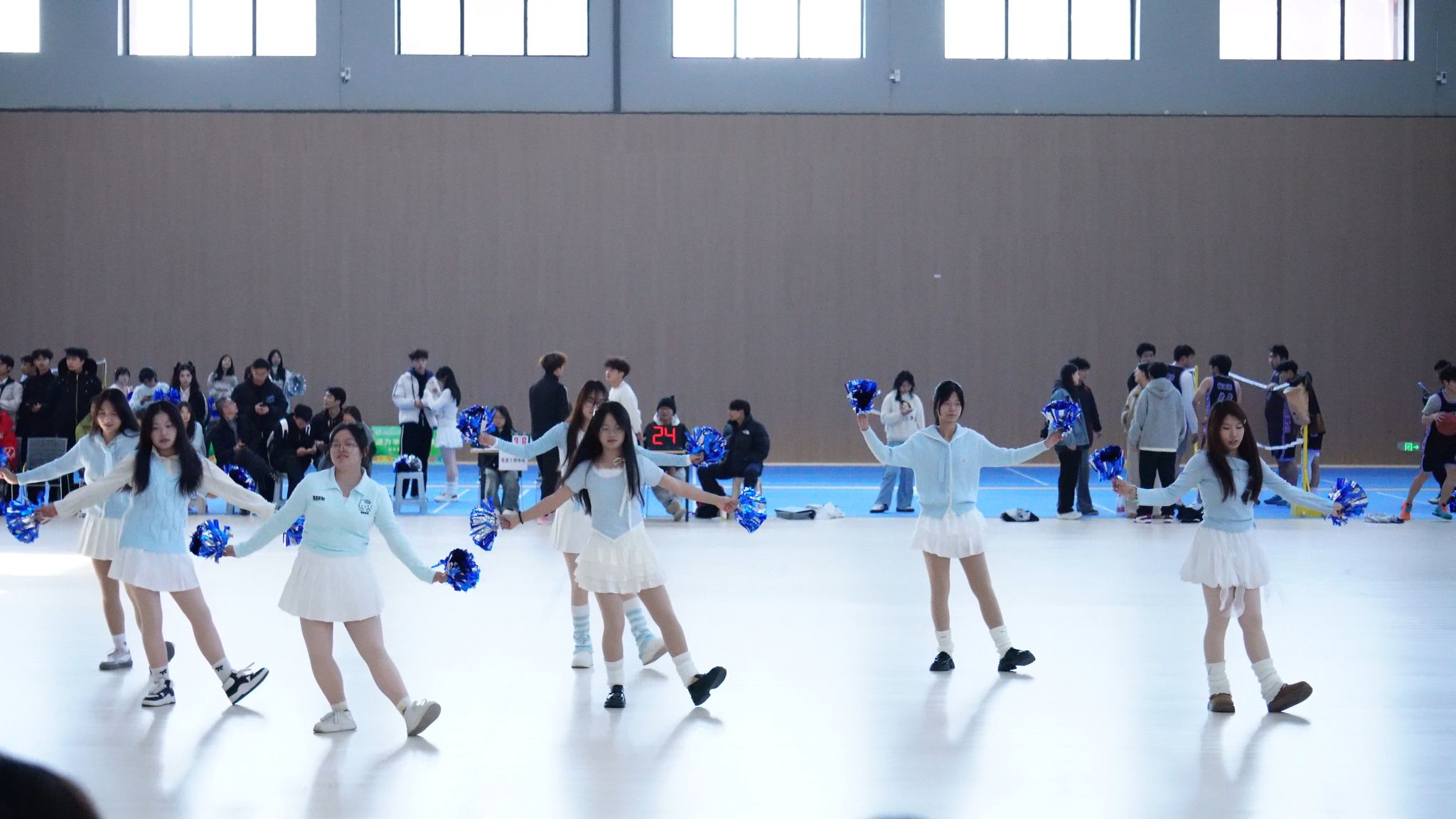 比赛前,一场精彩的啦啦操表演拉开比赛序幕,瞬间点燃赛场的热烈气氛。在比赛初,裁判将篮球抛于空中,双方球员立刻进入状态,体育学院的球员如闪电般突破防线,率先为球队拿下第一个进球,博得现场观众的喝彩和掌声。