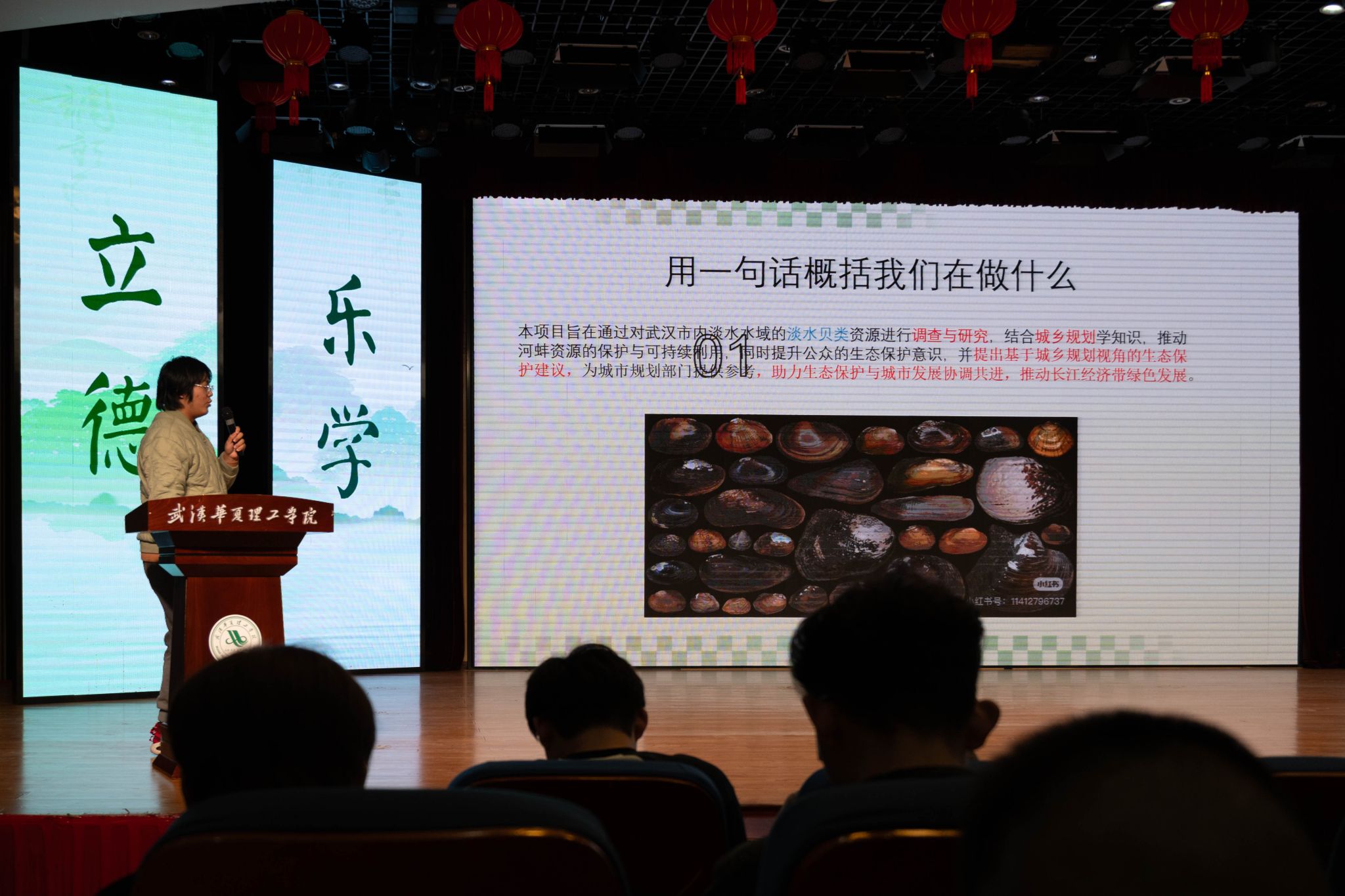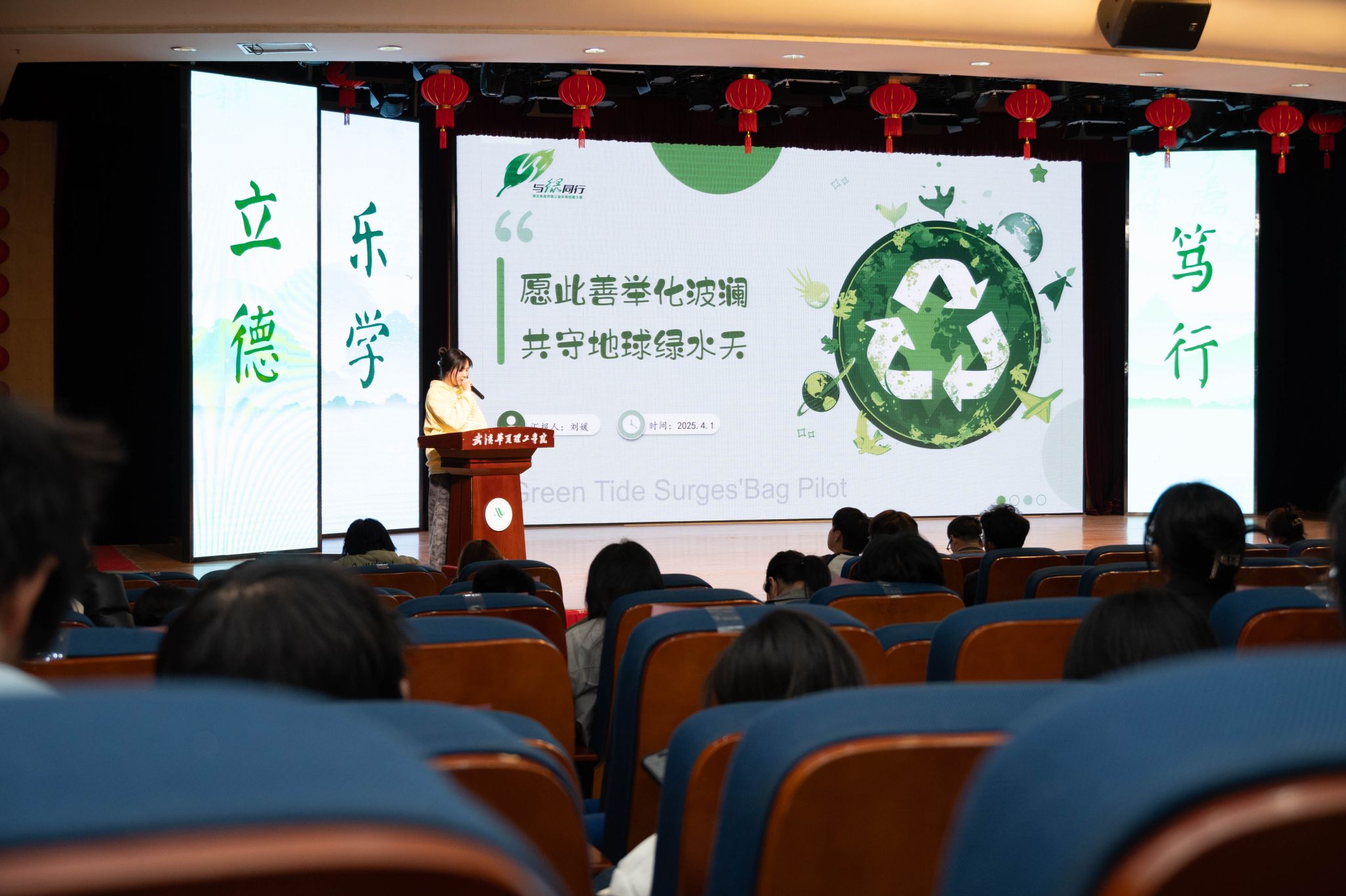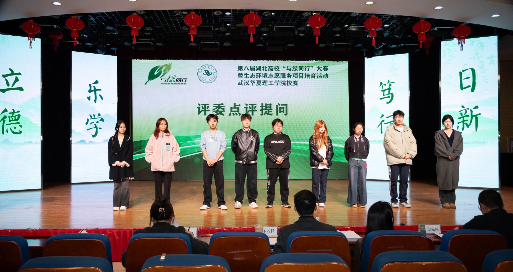 4月1日晚,第八届湖北高校“与绿同行”大赛暨生态环境志愿服务项目培育活动beat365官方网站校赛在学术报告厅举行,武汉理工大学副教授王石径、武汉生态环境志愿服务总队骨干志愿者金宪琦、武汉生态环境局刘婷婷、校团委书记潘晶担任决赛现场评委,各学院的师生代表也积极参与其中,共同见证了这场聚焦生态环境保护的盛会。