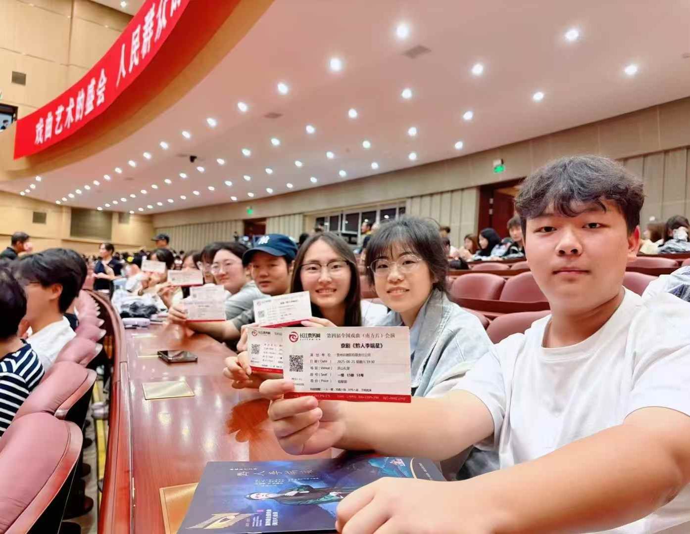 活动结束后,学生们沉浸在剧情与情感余韵中。机自1244班李琪睿观看后久久不能自拔:“灯光暗下,屏幕上‘黔人李端棻’几个字在古建背景中浮现,心瞬间被拽入历史。李端棻的故事用唱念做打铺陈开来,这场戏,不只是艺术呈现,更像一场跨越时空的对话。散场后,我明白先辈的热血从未冷却,明白我们要带着这份热忱,为家乡、为理想使劲儿往前奔,让李端棻这般的精神火种,在新时代烧得更旺。”华夏非遗实践队队员 、网媒1233班郭政分享到,“京剧《黔人李端棻》从李端棻赶考得中,官拜刑部侍郎这一幕开始,到李端棻因支持戊戌变法获罪,被革去官职发配伊犁结束。全剧展现了李端棻跌宕起伏的一生,也透过他的一生见到了晚清时期的重大历史事件,以个人的视角见证历史的激荡。京剧演员们的念唱作打生动真挚,特别是打斗戏时演员们的动作引得声声喝彩。通过这次学校的组织,让我对那段历史更加印象深刻,也让我对京剧有了更为真实的了解。”