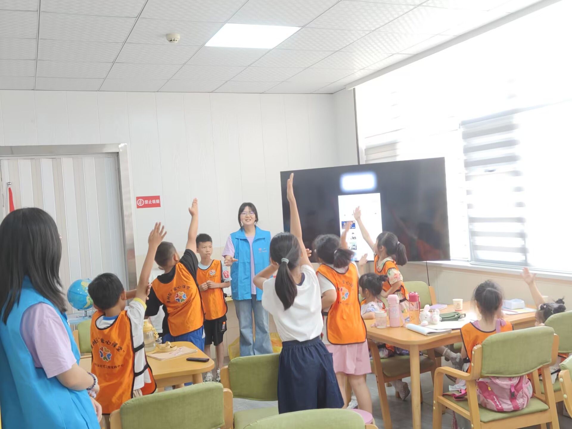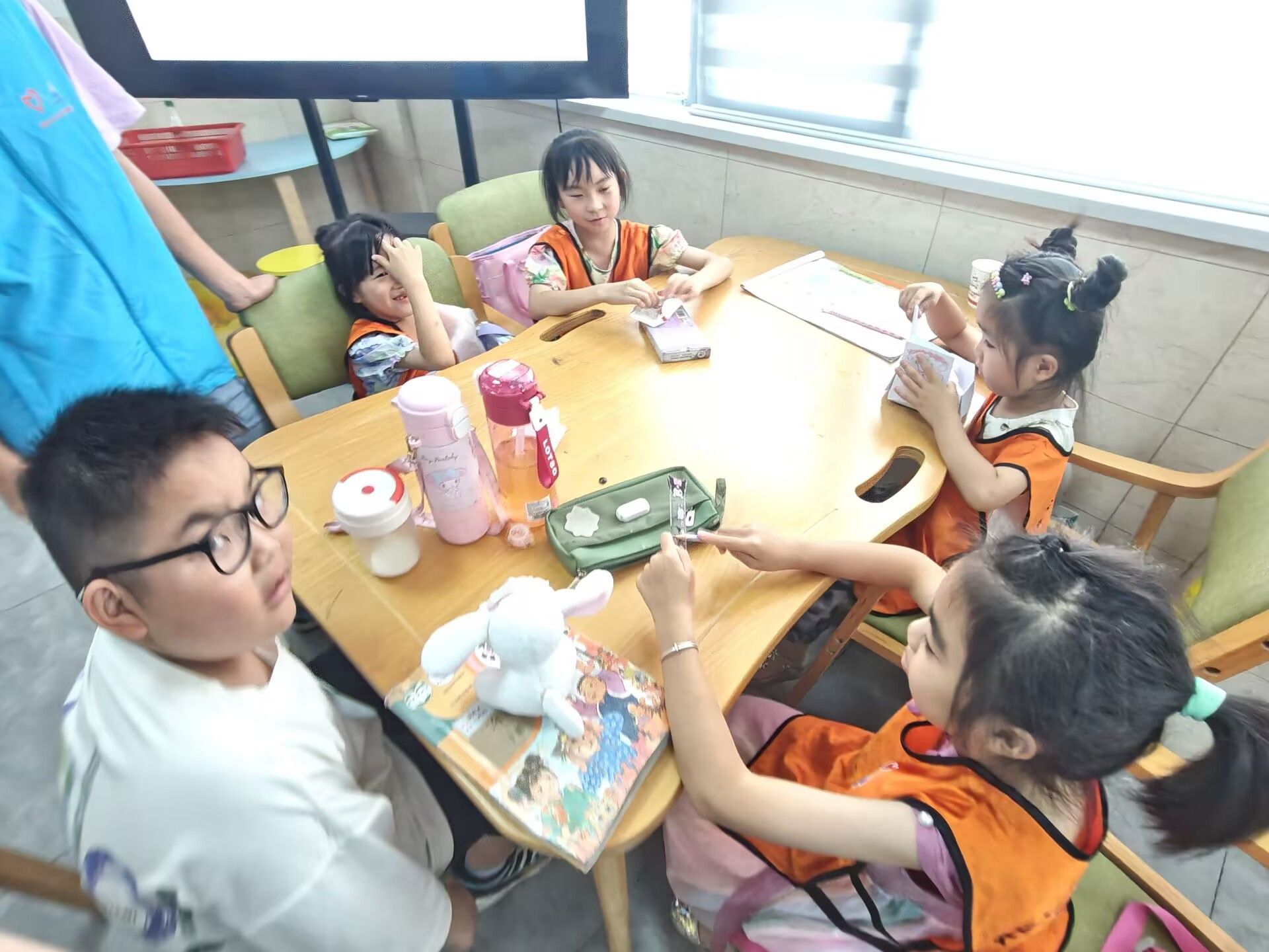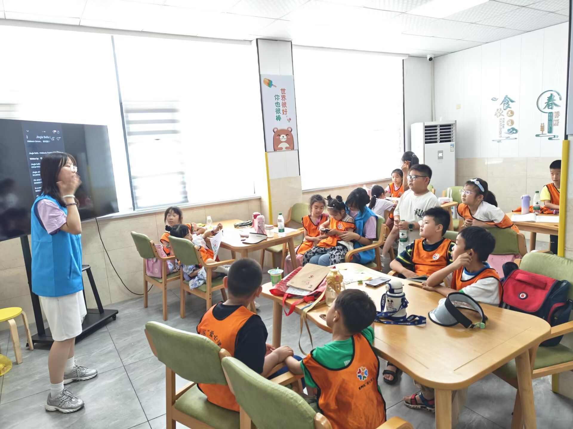 当日活动的亮点是一场别开生面的“夏日奇遇”故事会。志愿者们不仅用流利的英语讲述经典童话和寓言故事,还巧妙融入中文讲解,确保每位小听众都能沉浸在精彩的情节中。故事选择注重寓教于乐,传递友爱、勇气、诚实等积极价值观。互动环节更是高潮迭起——孩子们踊跃举手参与角色朗读、情节复述,甚至发挥想象力续编故事结尾。故事会现场气氛热烈,掌声与笑声不断,在语言浸润的同时,也完成了一次温暖的心灵陪伴与品格熏陶。
