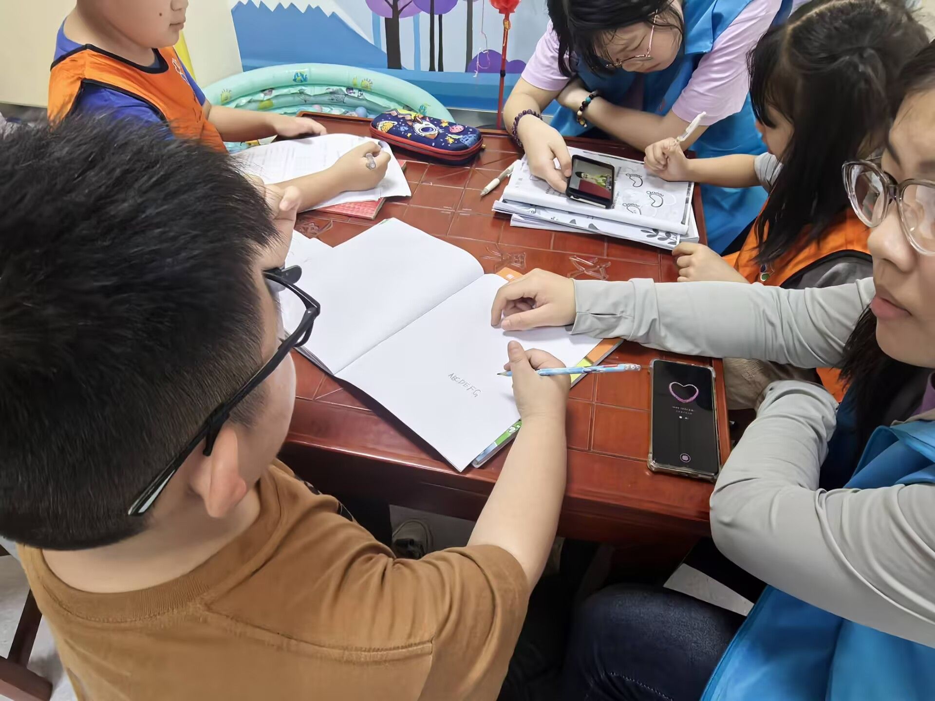 “很多家长工作繁忙,孩子独自在家既不安全也易荒废时间。我们希望能真正帮他们解决后顾之忧,”志愿者外语学院学生徐同学表示。带队教师李老师强调,此次“辅导+托管”双轨模式是学校响应社会需求、深化实践育人的创新尝试,引导学生在服务基层中锤炼责任担当与组织协调能力。
