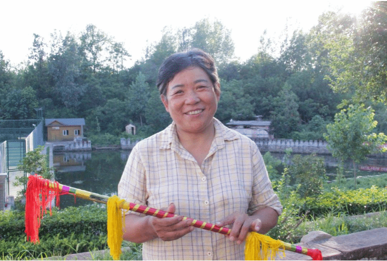 学习过程充满了专注与热情,也伴随着初学者的挑战。队员们手持莲湘竿——一根长约一米、两端嵌有铜钱或金属环、系着红色和黄色布条的竹竿,在张奶奶的悉心指导下,从最基础的握姿、站姿开始学起。张奶奶耐心地示范着每一个动作的要领:“手腕要活,力道要匀,眼随竿走,脚踩鼓点。”她时而亲自上前,轻轻调整队员略显僵硬的手臂角度;时而反复演示一个转身或击地的动作,强调“点、擦、翻、打”的精准配合。