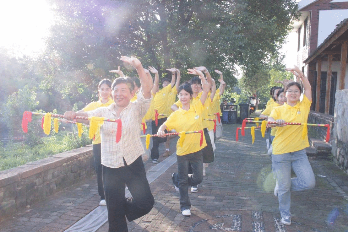 暮色如纱,轻轻笼罩着红安县七里坪镇张家湾村。暑气渐消,晚风携着田野的清新拂过院落。结束了一日书声琅琅的支教课程,村中一隅却响起了别样的韵律——清脆、富有节奏的“哒、哒、哒”声,划破了乡村傍晚的宁静。这是“励行读书会”红安实践队的队员们,正全身心投入当地省市级非物质文化遗产“打莲湘”的学习之中,竹竿击地的声响,成了这个夏日黄昏最动人的乐章。