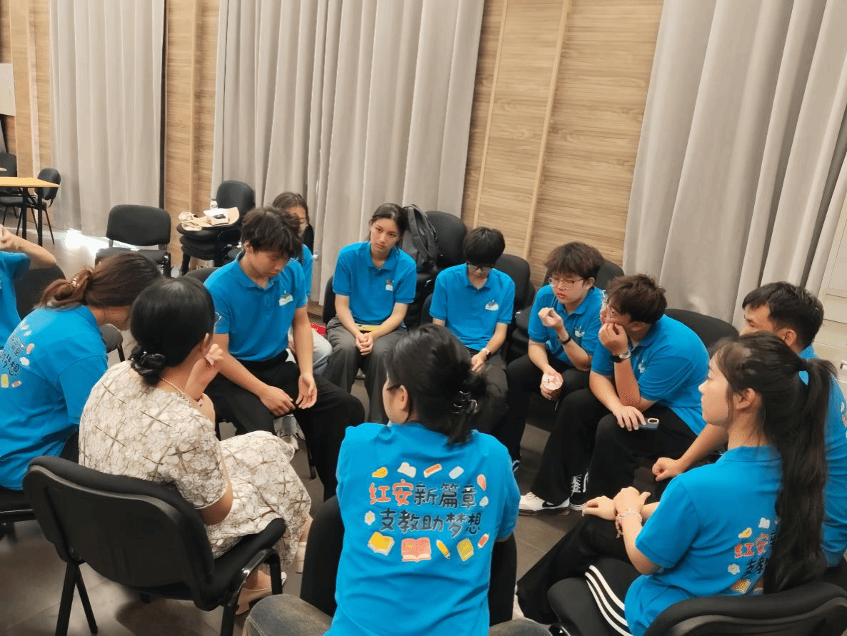 如果说下午的讲座是为家长赋能,那么晚上的沙龙,则是将“自动自发”和强者思维的理念进行内化于心、践之于行的深度熔炼。在温馨而坦诚的氛围中,张丽老师引导年轻的支教队员们,将下午讲授的沟通智慧与教育理念,投射到支教实践中。“我们不仅是播种者,也是破土的新苗。”一位队员鼓起勇气,分享了童年时因一次失败被严厉指责而深埋心底的自卑感。她哽咽道:“下午听到‘允许问题存在’和‘转念’时,我突然明白,那个‘失败’不是我的污点,它教会了我共情。就像今天班里的同学没被点到名时失落的背影,我懂他,因为我曾是‘他’。”这正是“强者思维”的生动诠释——从过去的伤痛中汲取力量,转化为理解和关爱他人的能力。