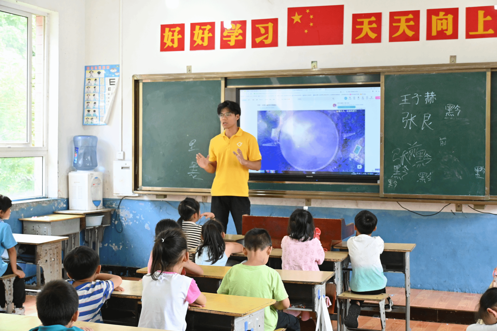上午,夏令营准时开课。大班开展硬笔书法课,以古诗《春晓》为内容,志愿者耐心指导书写技巧,孩子们认真练习,教室里书香浓郁。小班则开启“地理漫游与爱国情怀”课程,通过图文视频介绍贵州喀斯特地貌,并讲述“四渡赤水出奇兵”的红色故事,激发孩子们的家国情怀,课堂气氛热烈。