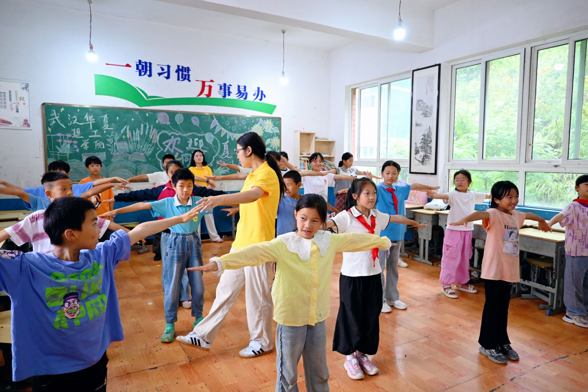 下午的课程依旧活力满满。大班的孩子们迎来了街舞课,志愿者老师带领孩子们进行热身运动,随后教授基础舞步。孩子们在动感的音乐中尽情舞动,展现出青春的活力与自信。小班则开展了防溺水与运动防护课程。志愿者通过案例讲解和互动演示,向孩子们传授防溺水知识和运动时的安全注意事项,帮助孩子们提高自我保护意识,课堂气氛活跃而有序。