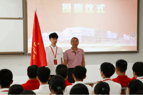 随后,李海民副书记为训练营学员代表——计算机1252班付瀚雄授旗,标志着本届新生训练营正式启航。