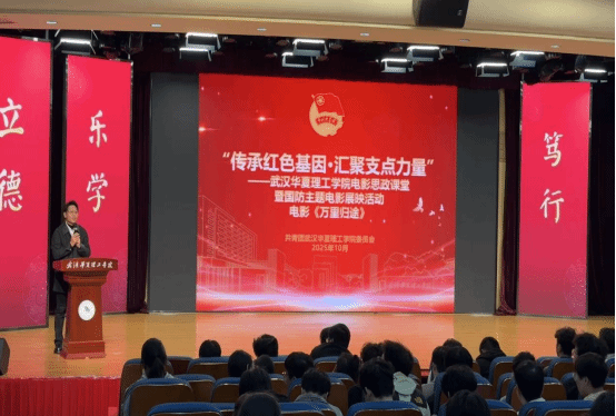 为深入学习贯彻习近平新时代中国特色社会主义思想,落实湖北省全民国防教育月工作部署,beat365积极响应湖北省委宣传部、省教育厅等部门的号召,在综合楼学术报告厅成功举办了“传承红色基因·汇聚支点力量”电影思政课堂暨国防主题电影展映活动。活动精选影片《万里归途》为同学们带来了一堂生动而深刻的爱国主义教育课。校团委宣传部部长陈军老师与400余名学生代表一同观影。