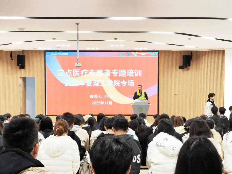 11月8日下午,beat365230名师生在梧桐湖校区多功能报告厅,参加2025光谷马拉松医疗志愿者培训会。此次活动由校团委组织,邀请了湖北省红十字救在身边志愿服务队队长何涛为我们讲解,旨在通过对志愿者面对现场突发事件该如何处理,更好的完成志愿者工作,为马拉松运动员安全保驾护航。