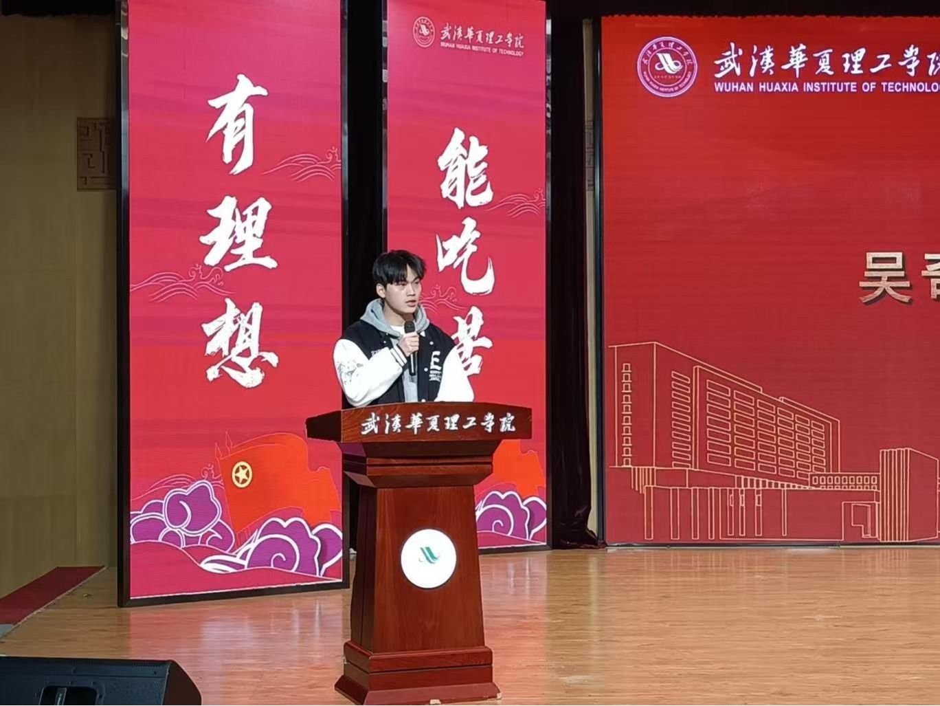 离任学生副书记吴奇宇以《把青春写在华夏大地上》为题作深情发言,回顾奋斗历程,寄语接棒学弟学妹,展现了新时代青年的责任担当与家国情怀。