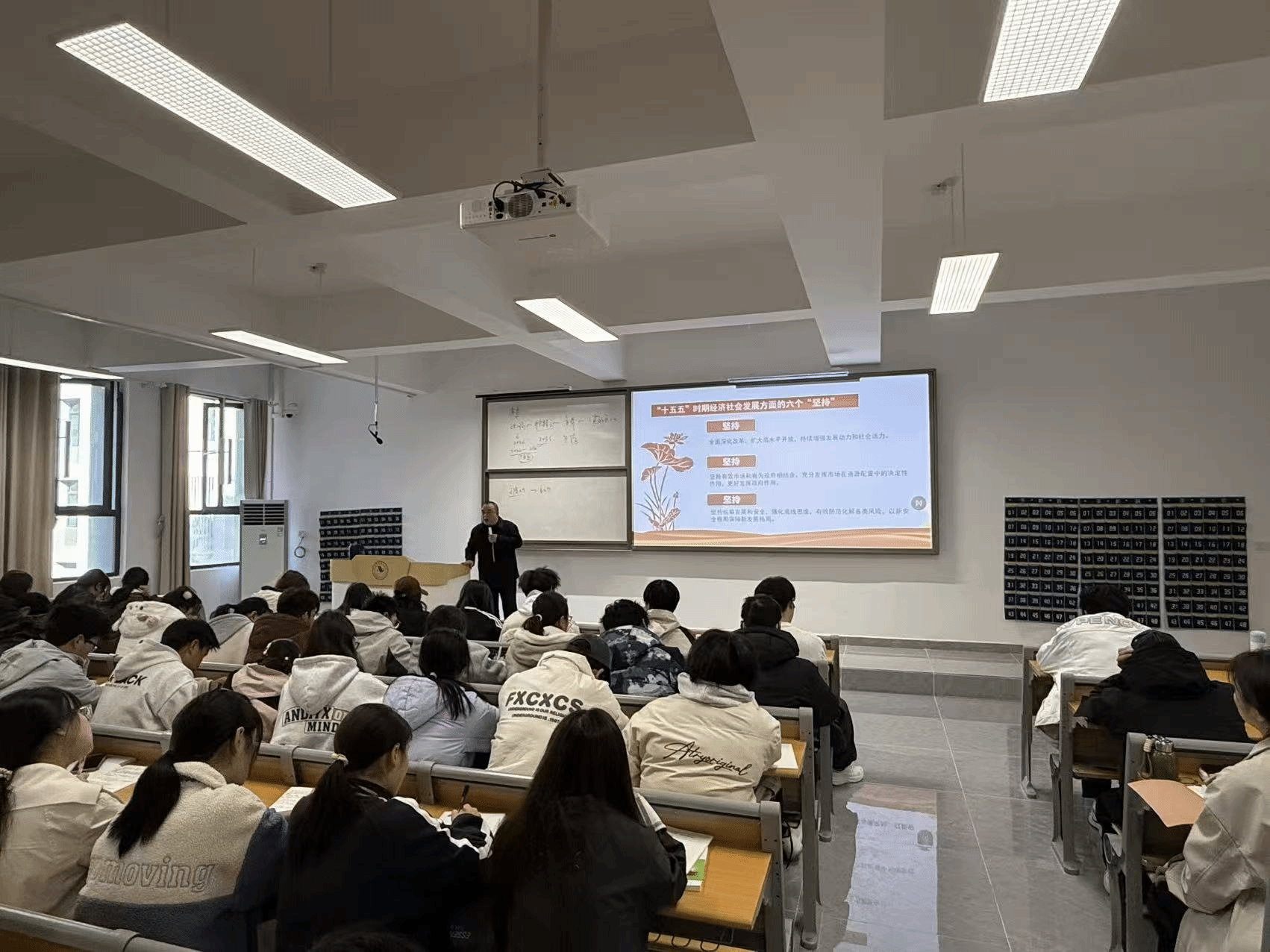 紧接着,王东教授围绕"十五五"时期经济社会发展方向展开深入讲解,重点阐述了六个"必须坚持":必须坚持党的全面领导;坚持人民至上,尊重人民主体地位;坚持高质量发展,以新发展理念引领发展;坚持全面深化改革,扩大高水平开放;坚持有效市场和有为政府更好结合;坚持统筹发展和安全,强化底线思维。他强调,这六个"坚持"深刻体现了党对执政规律的精准把握,是指导"十五五"时期经济社会发展的根本遵循。