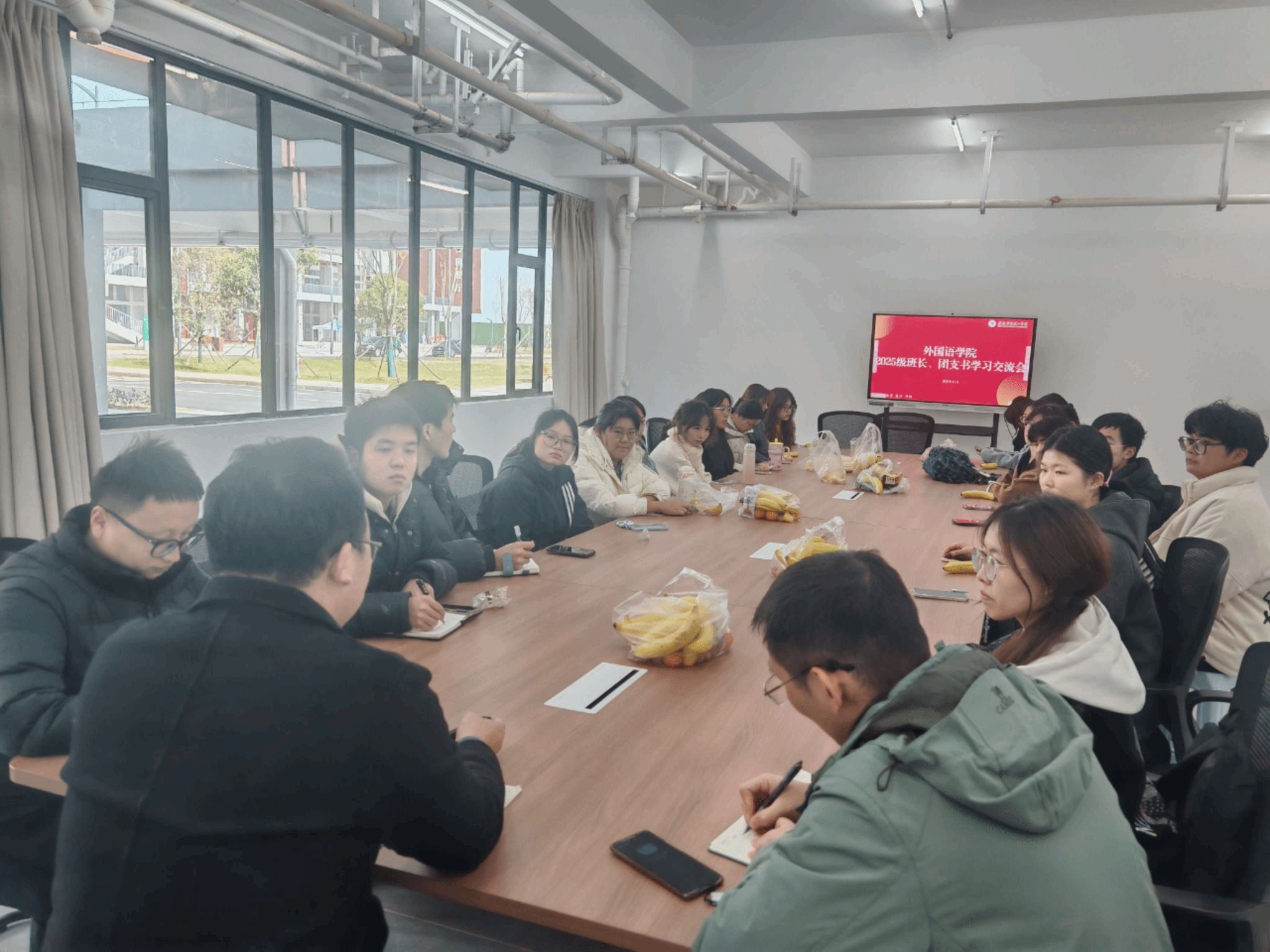 为进一步强化学生骨干队伍建设,提升基层班团工作质量,充分发挥学生干部在学院发展与学生成长中的桥梁纽带作用,11月27日,外国语学院在宿舍楼2-101会议室顺利召开2025级班长团支书学习交流会。学院党总支副书记马勇、学工办主任陈卓,辅导员龚飞、吴碧凯、韦文信及2025级各班班长、团支书、年级负责人共同参会,凝聚思想共识,明确工作方向。