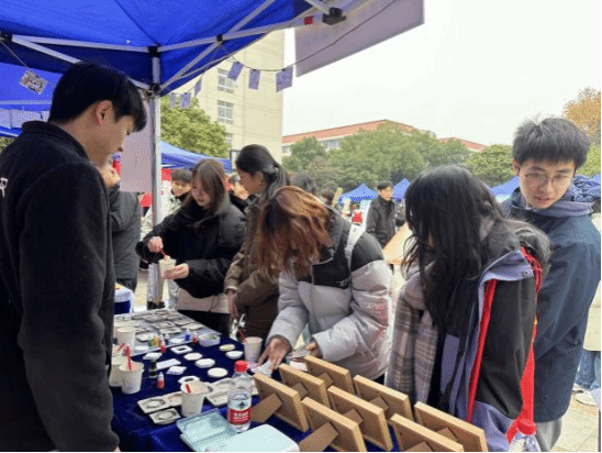 沐光实践队以“非遗传承、科技赋能、红色文化传承、乡村支教”多元矩阵亮相。中草药香包制作区改良传统香方讲解养生功效,扎染体验区指导参与者创作专属作品。科技展示环节,小型机器人精准完成动作,践行“沐光而行,创科技未来”口号。红色文化互动区通过趣味互动让参与者重温长征关键节点。实践队还分享赴丹江口乡村支教经历,多元融合的服务模式赢得广泛好评。